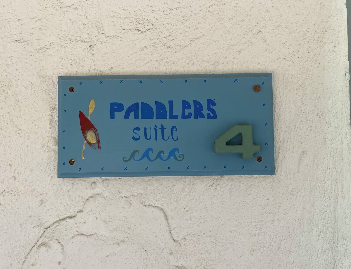 The Paddlersâ Suite caters to the imagination of kayak and canoe adventurers. The 3-room suite includes a living room, separate bedroom with queen bed, and full kitchen with a cozy eating area.Come relax, unwind and enjoy easy access to popular shops, restaurants, and local festivities all within walking distance Four guests, full kitchen, one bedroom, living room with sofa bed, and a bathroom. The kitchen includes a fridge/freezer, microwave, toaster, coffeemaker, stove top, oven, sink, dishes and built-in picnic table.