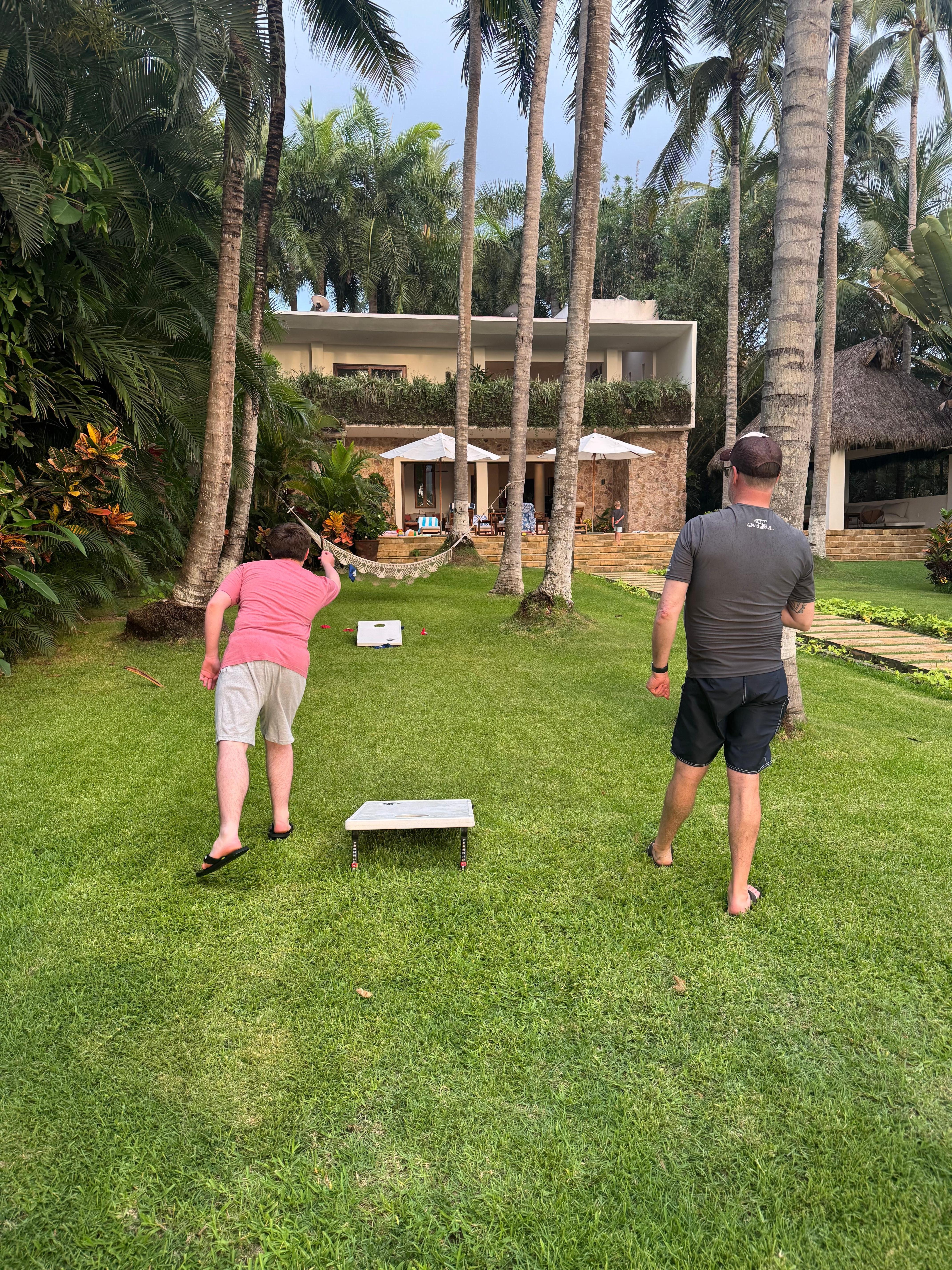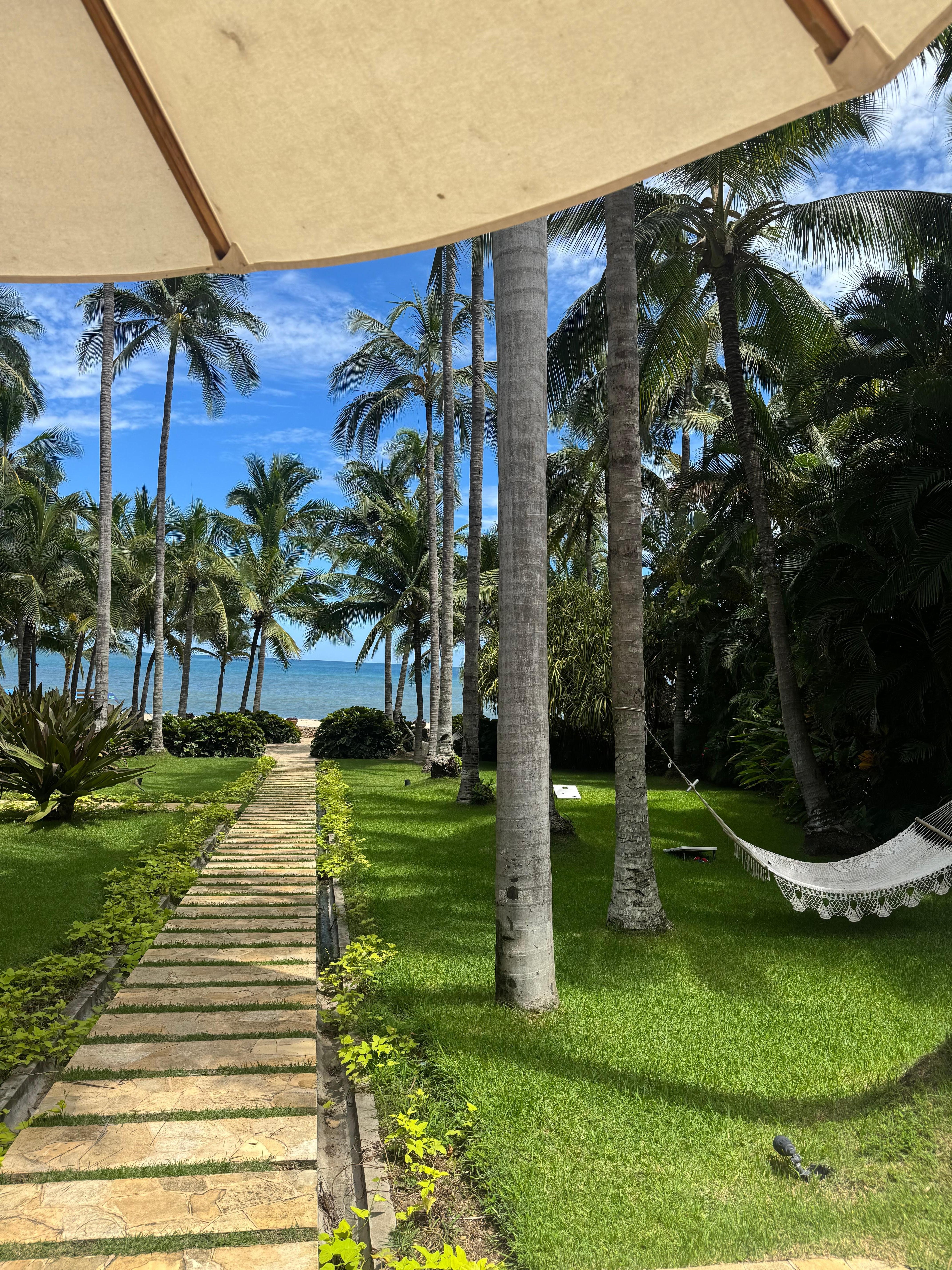DÚs que vous entrerez dans Casa Ilusion, vous verrez à travers la maison principale joliment aménagée un terrain paisible et aménagé de maniÚre professionnelle, ainsi qu'une vaste pelouse luxuriante entourée de palmiers magnifiques. Détendez-vous sous un palapa, un parapluie ou dans un hamac au bord de l'océan, au son des vagues et de la brise marine. Portez votre planche 200 mÚtres sur la plage pour surfer à gauche ou à droite, ou dirigez-vous vers la plage pour dßner.