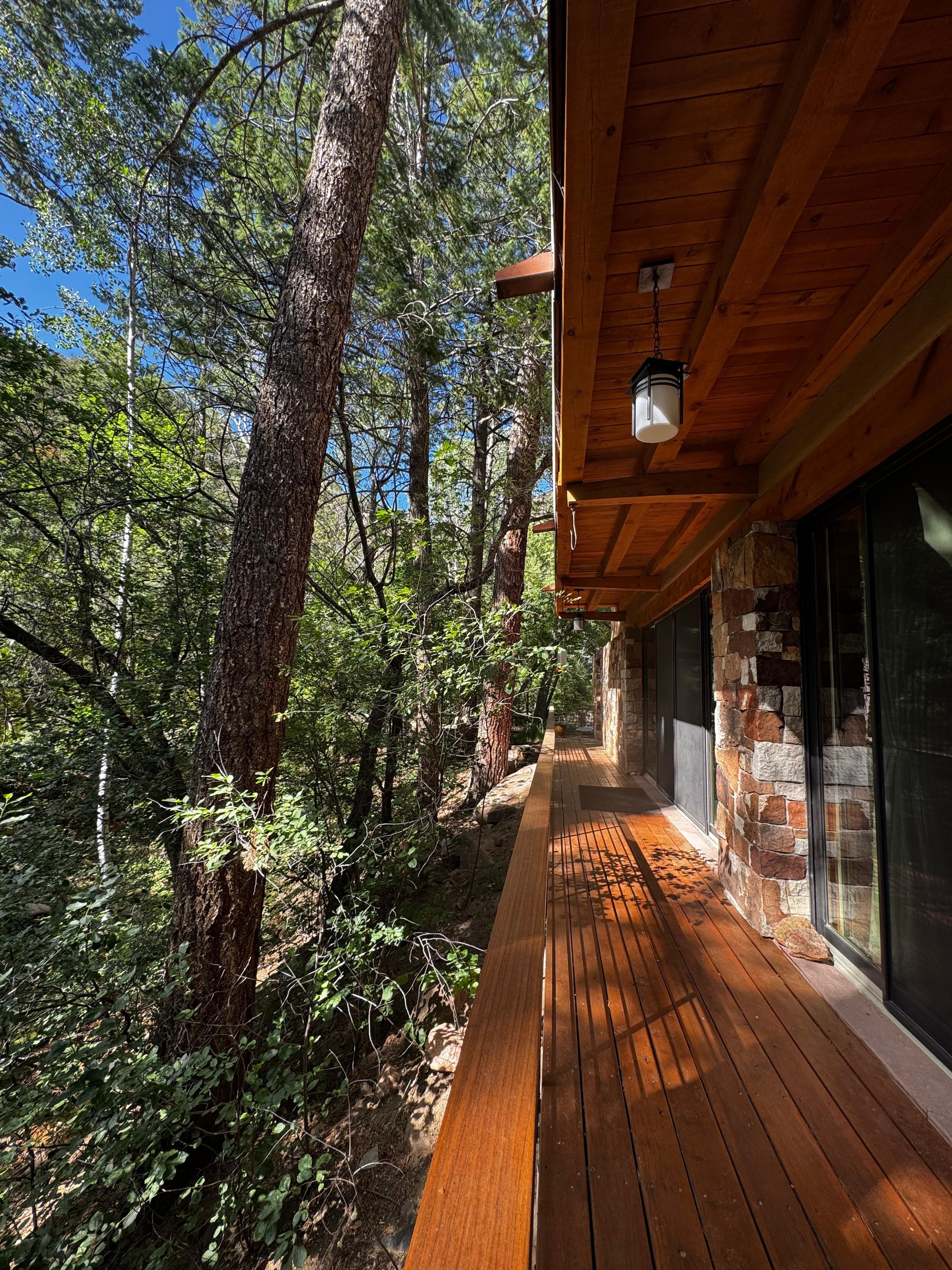 La maison dispose d'un grand espace terrasse et patio donnant sur le ruisseau et le bain à remous, parfait pour recevoir à l'extérieur.