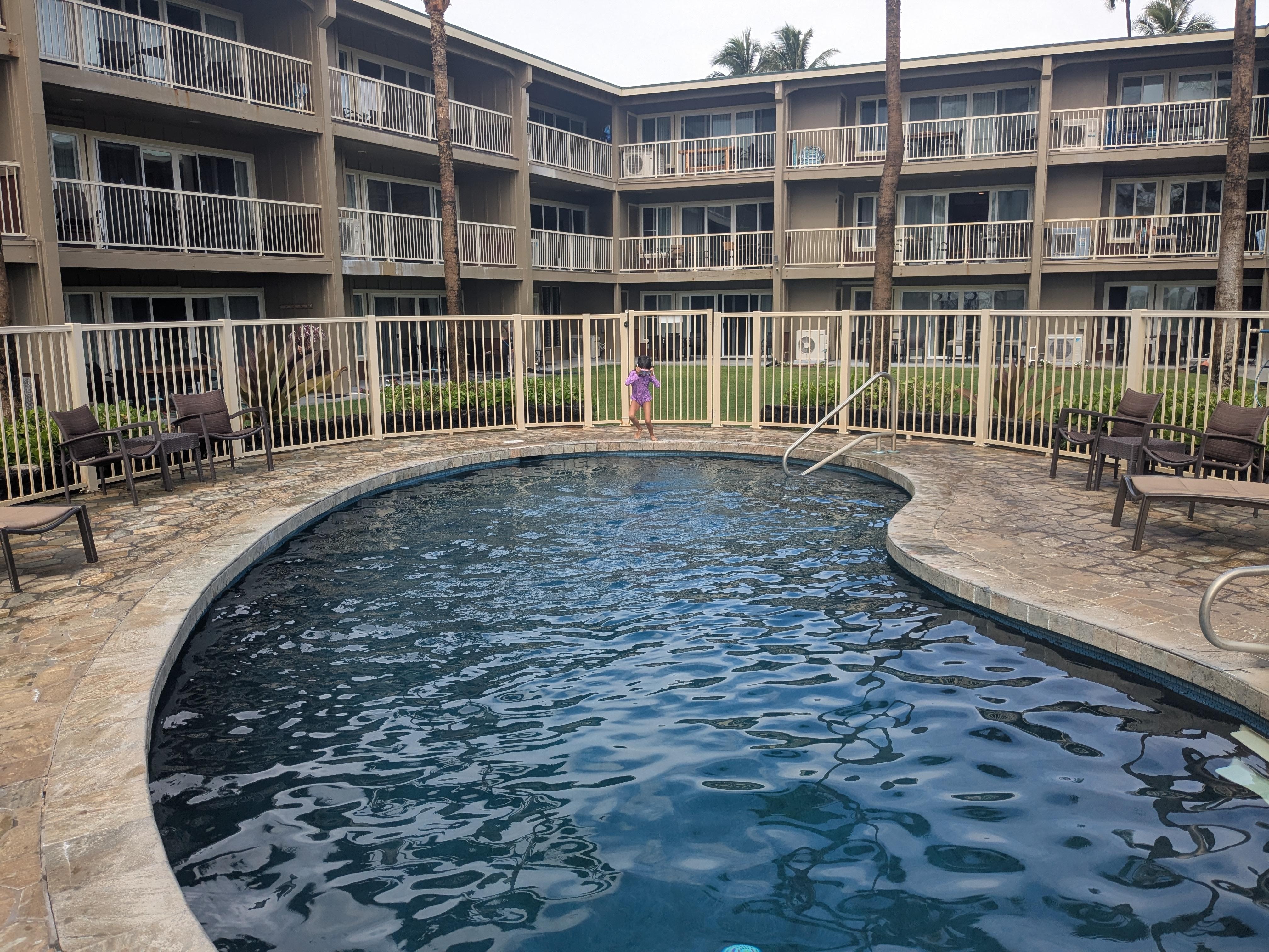 Some things we enjoyed. But something's not so much.Pros:Cute small pool and beachUnit was cleanEven though they were in California, owners did answer questions.Cons:3rd floorOlder condo, had lots of grime and broken handle on the pool shower, doors on game room stuck. Floor was sticky. EwwwSmall unit, no hot plate. Had antsNo parking stall, pretty much have to wing it.Random homeless folks in the areaWater main broke, we had no water for 12 hours. Zero discount for the inconvenience.Over all, kind of high priced for what it is Someone's cash cow which was evident from the lack of owning up to the water issue Hard pass, wouldn't do it again