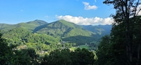 The mountain view starts with glass doors leading to a 50 foot covered deck with a hot tub and rocking chairs to relax. Our view includes the mountains and farmlands of Maggie Valley. The main floor has three bedrooms and two large full double sink bathrooms, an open concept living area with a Gas Fireplace, Smart TV, Blu Ray/DVD Player. The fully stocked Kitchen has a Microwave, Dishwasher, Coffee Maker, Toaster, Crock Pot, Tea Kettle, Dish set, Glassware, Cutlery, Pots and Pans....everything you need to prepare any meal.