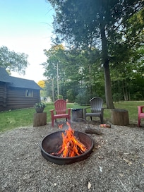 The cabin is tucked in a quiet area west of Honor, near the Big Lake that provides easy access to local activities and attractions as well as a bonfire pit to gather at the end of the day and recount the days' activities and make memories.