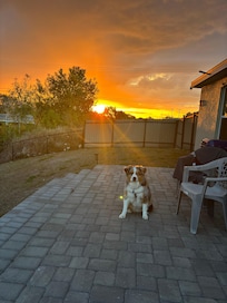Pet friendly with a fenced yard was my first priority. The roomy house, quiet neighborhood and convenient location made my seven week stay comfortable and stress free. The host was very responsive to my questions. The sunrise and sunset from the patio were beautiful. The appliances were all in good condition. I felt safe and added a few days to my stay because the weather was gorgeous.