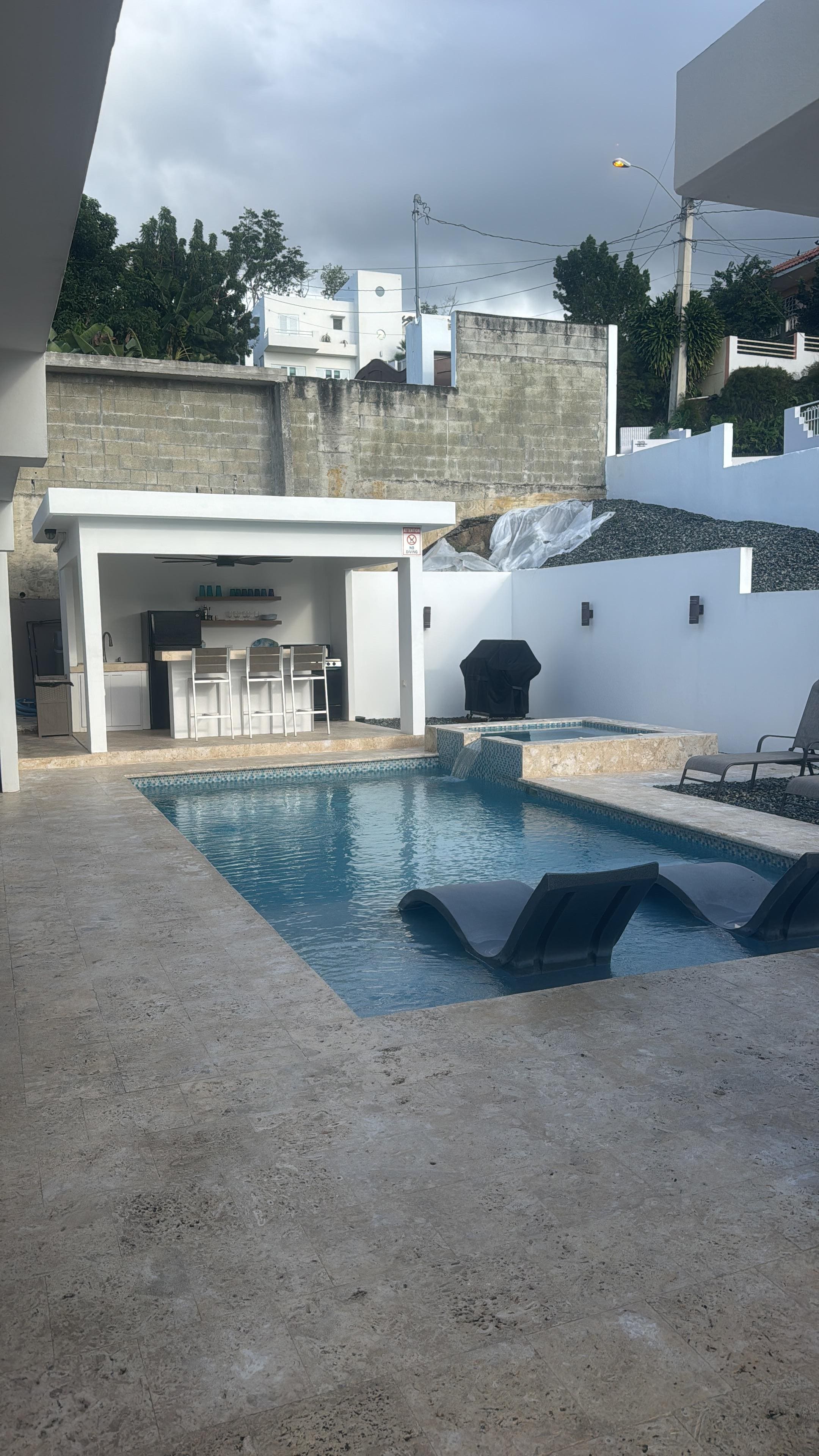 Bienvenidos a Casa Caleta! Bringing Rincon a modern touch with a Miami flair where class and elegance meet simplicity and comfort. Centrally located in the heart of Rincon, just a short walk to the beach, supermarkets, restaurants, bars, food trucks, downtown and more. Casa Caleta features a pool, jacuzzi, six bedrooms, four bathrooms, game room with PS5, guest room complemented with a desk, baby crib and futon.