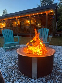 Nestled on the outskirts of the picturesque White Mountains, our cabin offers a peaceful getaway amidst the woods, ensuring ample privacy and tranquility. Unwind and connect with nature as you gather around the Breeo smokeless wooden firepit, complete with sear plates and a grill post, perfect for cozy evenings with loved ones. Embrace the comfort of Adirondack chairs while you enjoy the warmth of the crackling fire.