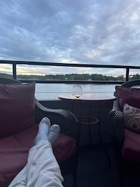 We've furnished the balcony with comfy seating for everyone in your group. No matter the season, whether you're enjoying your morning coffee or evening glass of wine, the views are always amazing. Sometimes you can even catch the sounds of a band playing at one of the lakefront restaurants. 4th of July weekend there are fireworks shows from every angle. And in the fall and winter, you can watch the leaves change color everywhere...followed by the lake slowly freezing over for a couple months.