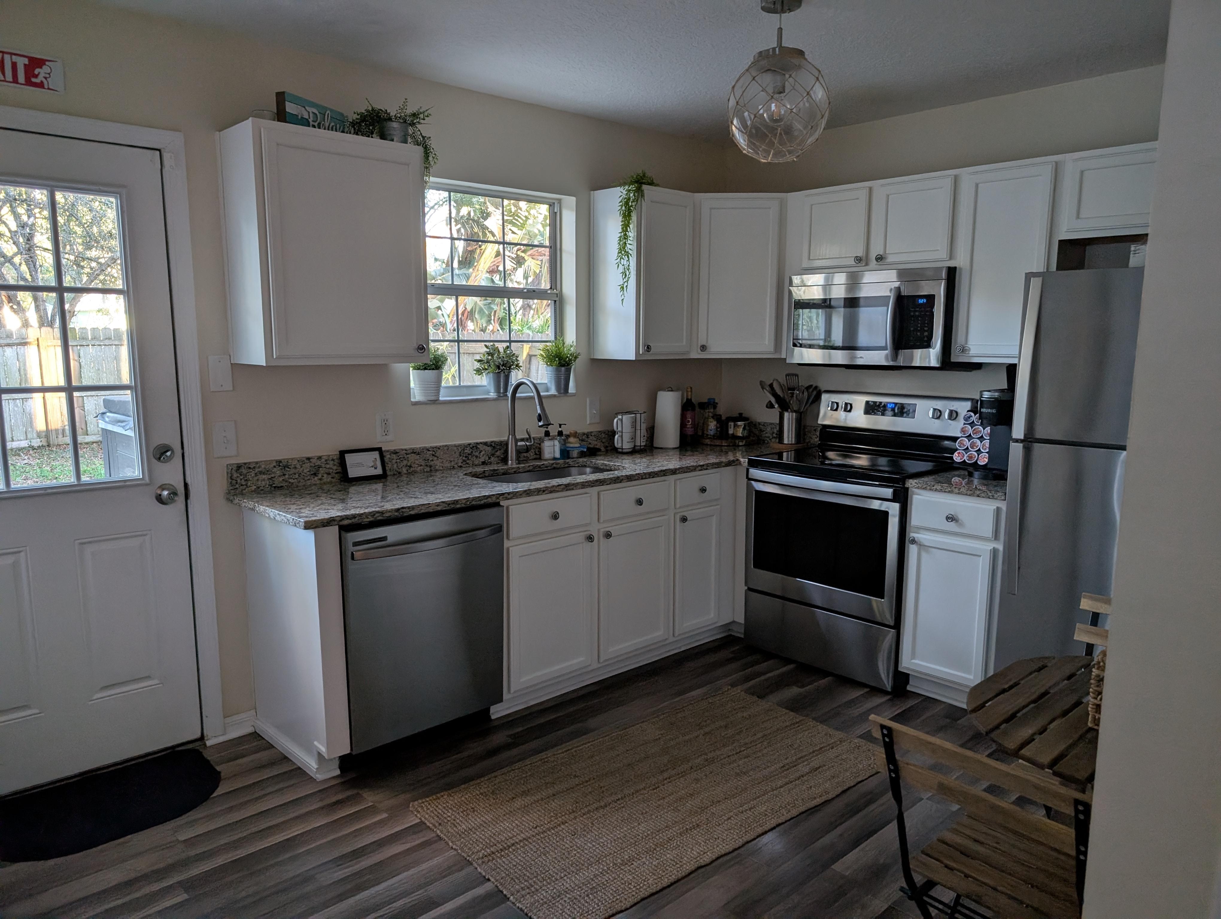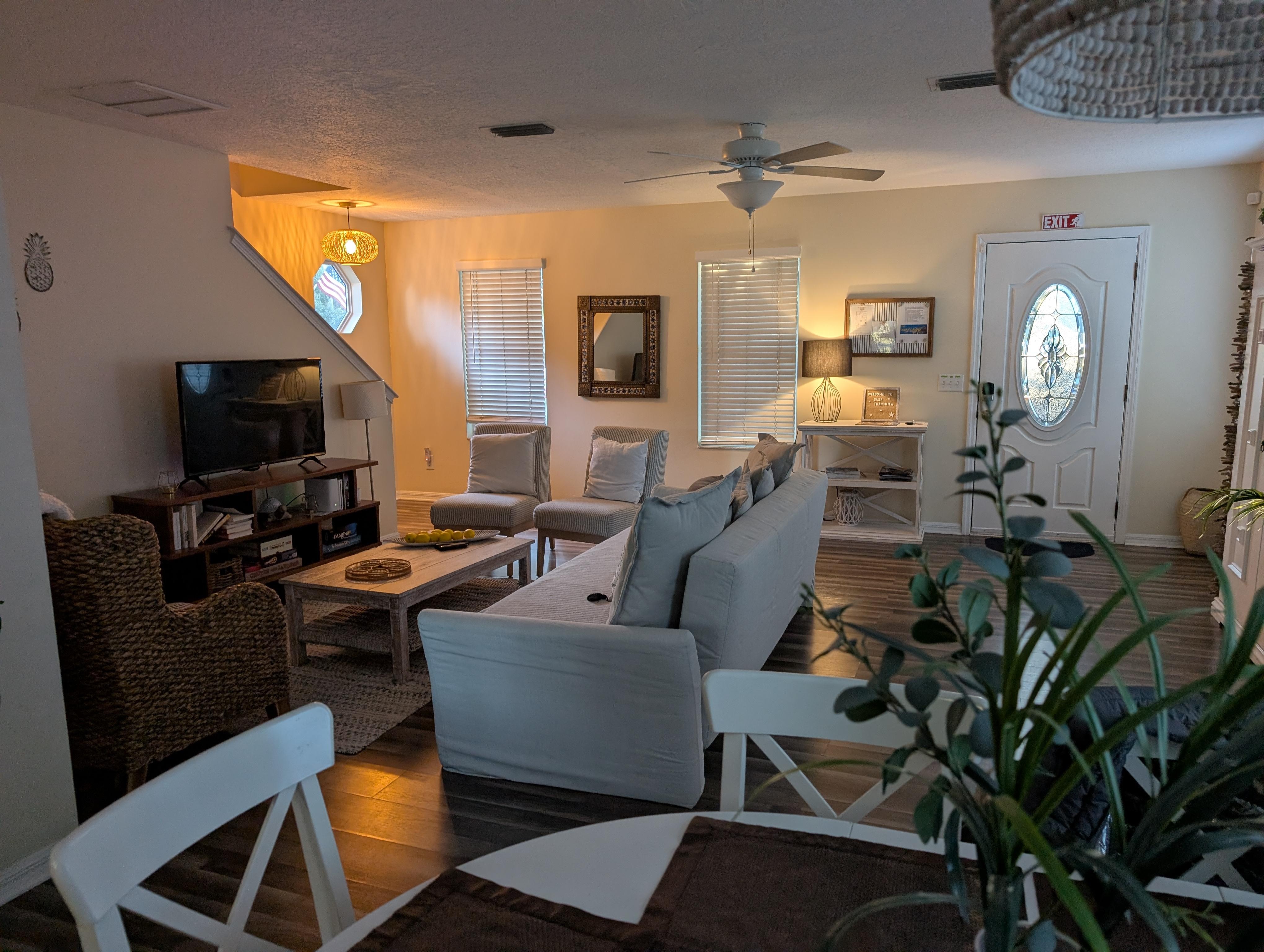 You will stay in a well appointed cottage in downtown St Augustine, with beautiful mature oak trees in the front and backyard. Downstairs are the living room and dining area as well as a full kitchen, large half bathroom and laundry room. The kitchen is well stocked and the perfect place for making a great meal. Otherwise, enjoy local take out in the dining room with seating for six or walk to a great restaurant. Three bedrooms upstairs and two full bathrooms: one en-suite in the master bedroom, the other one a shared bathroom for the queen and twins bedrooms). In the backyard you will find an outdoor dining area, comfortable seating, a bbq, a firepit and a large Jacuzzi.