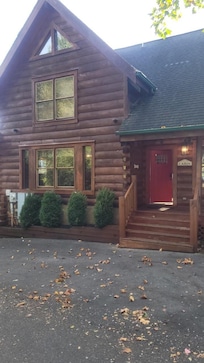Ne pas oublier les deux porches surdimensionnĂ©s oĂč vous pourrez profiter du cadre paisible de montagne dans l'une de nos vieilles chaises de temps Ă bascule. Sur le porche de l'Ă©tage principal, faire griller vos aliments prĂ©fĂ©rĂ©s sur le gril au gaz propane. DĂ©tendez-vous sur le niveau infĂ©rieur et profiter de notre jacuzzi 6 places.