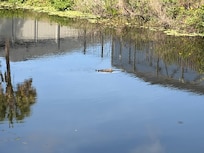 Squirrels and rabbits love to frolic outback. On occasion you might spot a family of small bob cats first thing in the morning. They are shy; they only go by if you're indoors. On sunny days you can catch alligators swimming by the dock. They love to sun themselves on the shore across the canal.