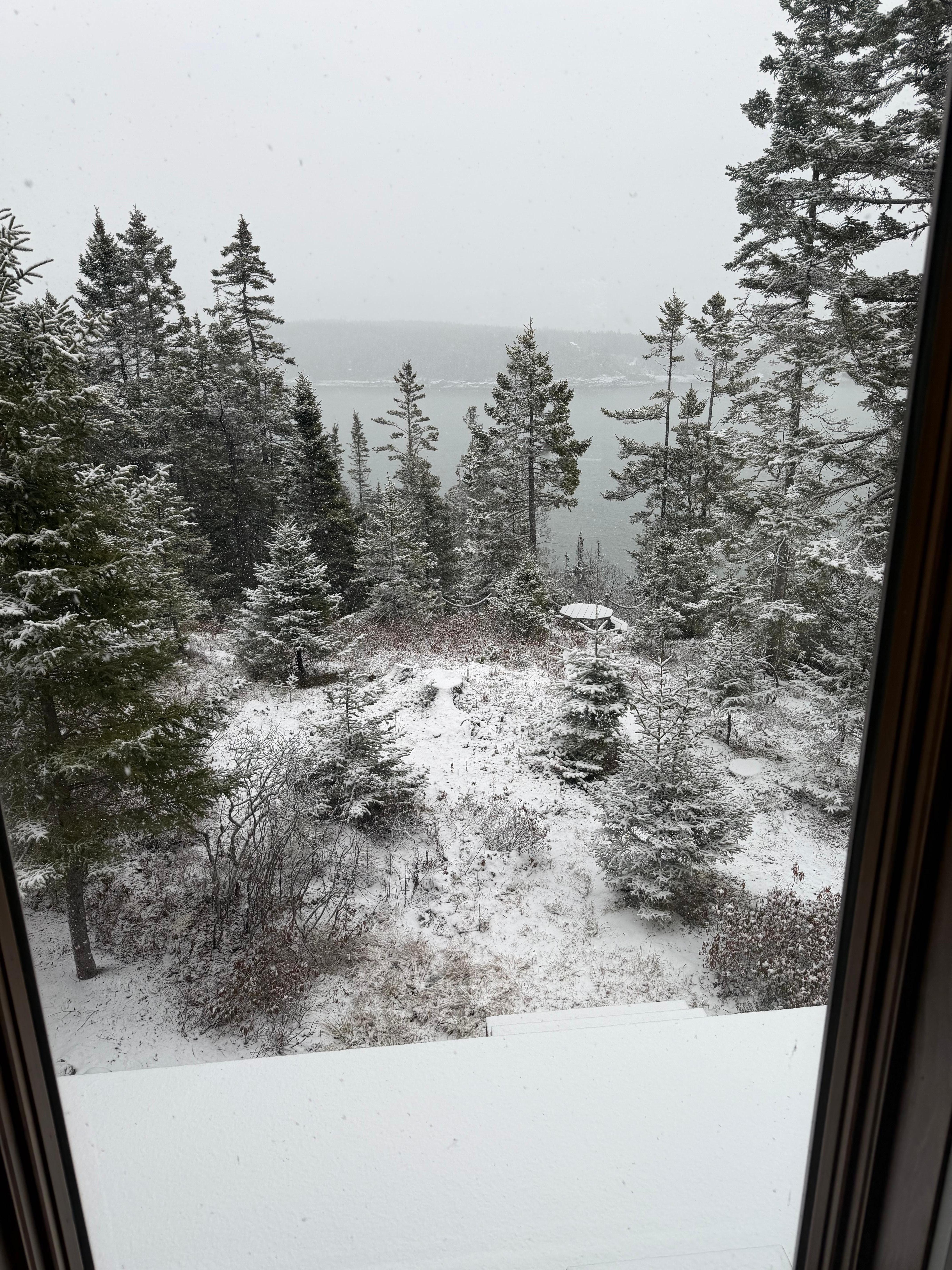 Juste Ă la fin de Port Road et sur Rose Lane (un chemin de terre d'un quart de mile Ă travers les arbres), vous trouverez le Prowhouse perchĂ© au sommet de Rose Ledge. Bien que l'emplacement de la maison soit merveilleusement idyllique entourĂ© d'acres d'arbres et d'animaux sauvages - ce n'est guĂšre inactif; Howards Cove sera votre propre théùtre privĂ© en bord de mer, vous prĂ©sentant quotidiennement un petit dĂ©filĂ© de bateaux Ă homards, d'oiseaux de mer, de phoques, de kayakistes et de nuages extrĂȘmement expressifs. En regardant par nos fenĂȘtres ou debout sur Rose Ledge, vous verrez Ă©galement les tours radio lointaines de Cutler qui scintillent la nuit; vous apercevrez la silhouette de fermes salmonicoles contre la mer et, un peu plus loin, vous dĂ©couvrirez le phare de Libby Island dont le flash intermittent et la corne de brume ajoutent de l'ambiance Ă votre sĂ©jour. (Ai-je dit corne de brume? Oui, en effet je l'ai fait. Le prix que nous, Mainers, payons pour une telle iconographie traditionnelle de la Nouvelle-Angleterre est, bien sĂ»r, l'existence du brouillard. Cependant, si vous ĂȘtes un fan des Highlands Ă©cossais ou des forĂȘts brumeuses et mĂ©diĂ©vales tapissĂ©es de mousses Ă©paisses et de troncs d'arbres sombres, vous trouverez les jours brumeux une partie authentique du package Downeast.