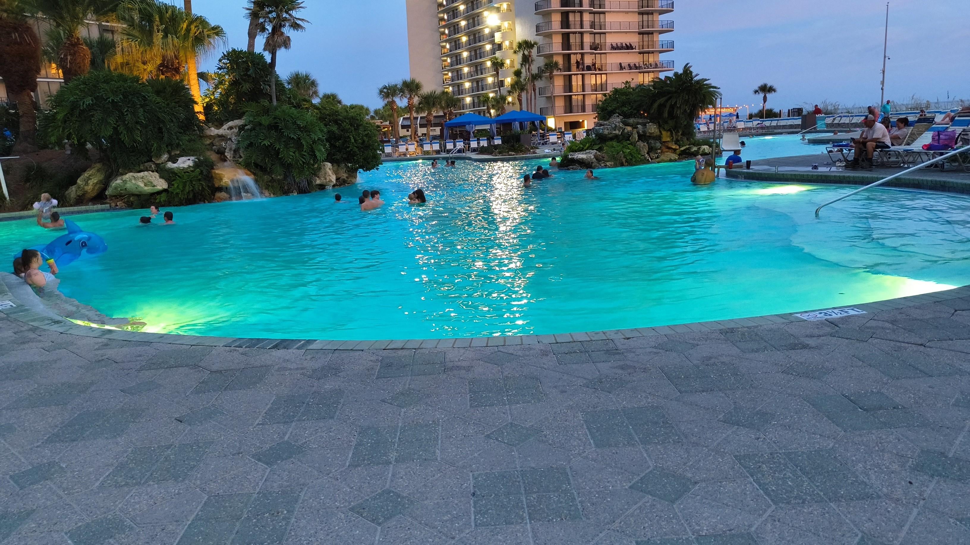 Edgewater possÚde plus de commodités que toute autre station Panama City Beach. Nous sommes allés en vacances depuis de nombreuses années au CDE et eu la chance d'enfin acquérir un condo de notre propre. AUCUN autre station PCB a un lagon 11.500 pieds carrés chargés de plantes tropicales luxuriantes et ses immenses palmiers. Il y a trois autres piscines de l'établissement (dont deux sont chauffés) et quatre grands bains à remous. Adjacent à la piscine lagon est Restaurant océan. Il sert le petit déjeuner, le déjeuner et le dßner et le bar sert toutes vos boissons préférées jusqu'à la fin de chaque soirée. Pendant les vacances de printemps et en été, il y a aussi un Pizza Hut par la piscine lagon et un couple d'autres restaurants. Si vous avez besoin dorloter, il y a un spa et salon de beauté sur place. Plus il y a une salle d'exercice, si votre objectif est de garder au large de ces livres de vacances :-)