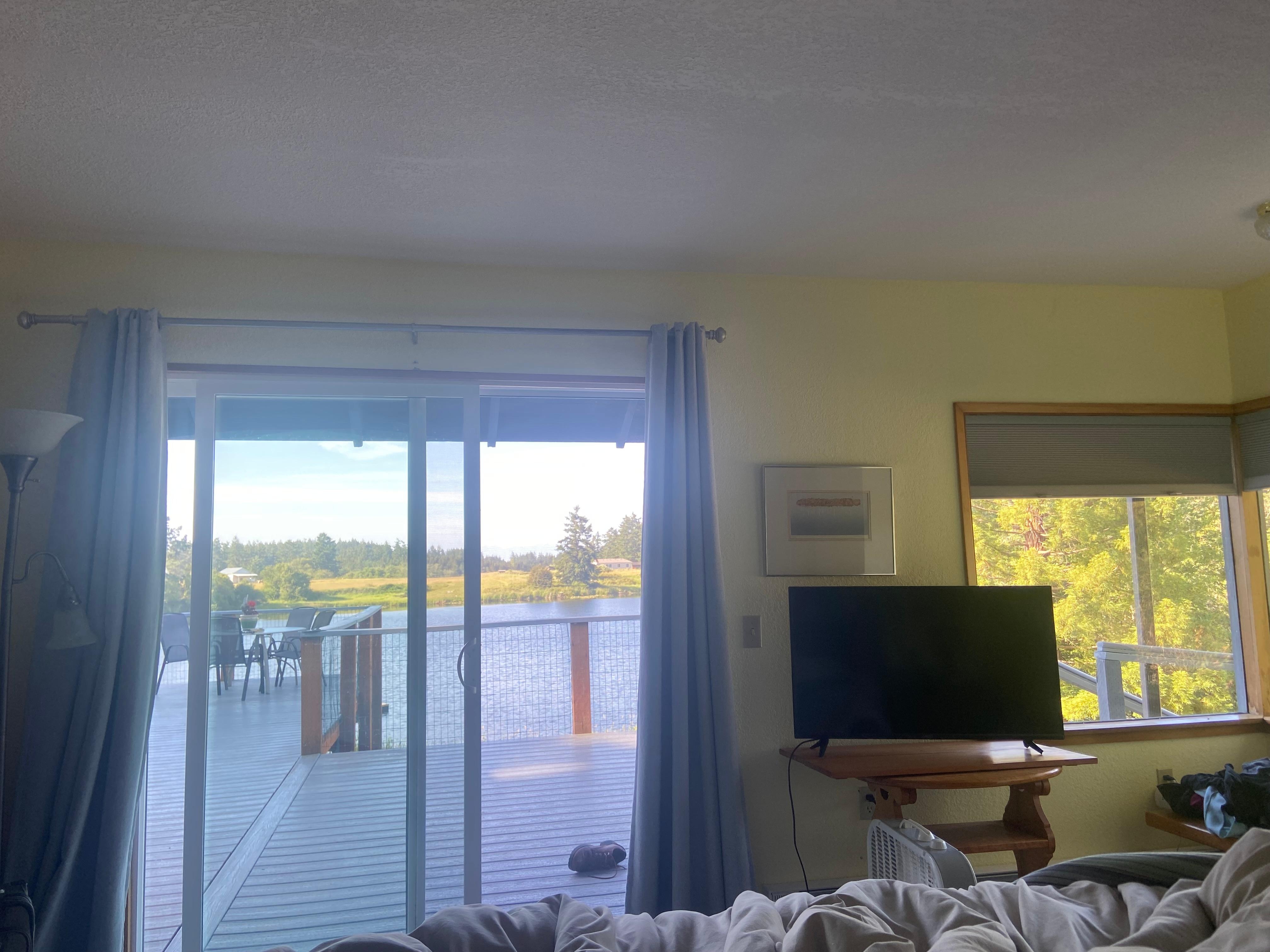 This private, light filled A-frame retreat is centrally located on San Juan Island, and is just steps away from the Pelindaba Lavender Farm and minutes from whale watching and hiking on the Westside. It is less than 10 minutes to any major point on the entire island. Here, you can enjoy eagle spotting on the south-facing deck overlooking this 9-acre lake property, or take in the view through floor-to-ceiling windows from a comfy recliner inside the open concept living room and kitchen.