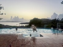 Wonderful views from the top deck of the guest house include the moorings of Great Cruz Bay and the island of St. Thomas. Plenty of parking with easy turn-around. The gently sloping yard is perfect for families with small children or elderly. Easy 5 min. walk to the Westin for beaches, bars and boat rentals/excursions.