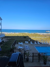 Enjoy your morning coffee watching the sunrise over the ocean or afternoon happy hour on your private oceanfront balcony. After a wonderful day at the beach cool off in our oceanfront pool! Hear the sounds and views of the waves and sunrise from bed. Near great restaurants, shopping , amusements and entertainment. Reserved covered parking. Completely equipped SS kitchen with drip pot and kuergig; icemaker. MBR has brand new Sealy king bed (most rentals squeeze you into a queen or double) second room with double bunk bottom, single top and single pull out. Pull out sofa in LR. Internet provided. Right off Coastal highway, on bus path. Park your car and enjoy an amazing fun and sun filled Ocean City vacation! Please note that Linens are not included; however, there are different packages available for purchase and please contact the owner should you be interested.