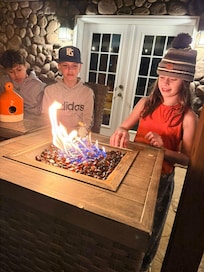 - Gas fire table with seating for 6