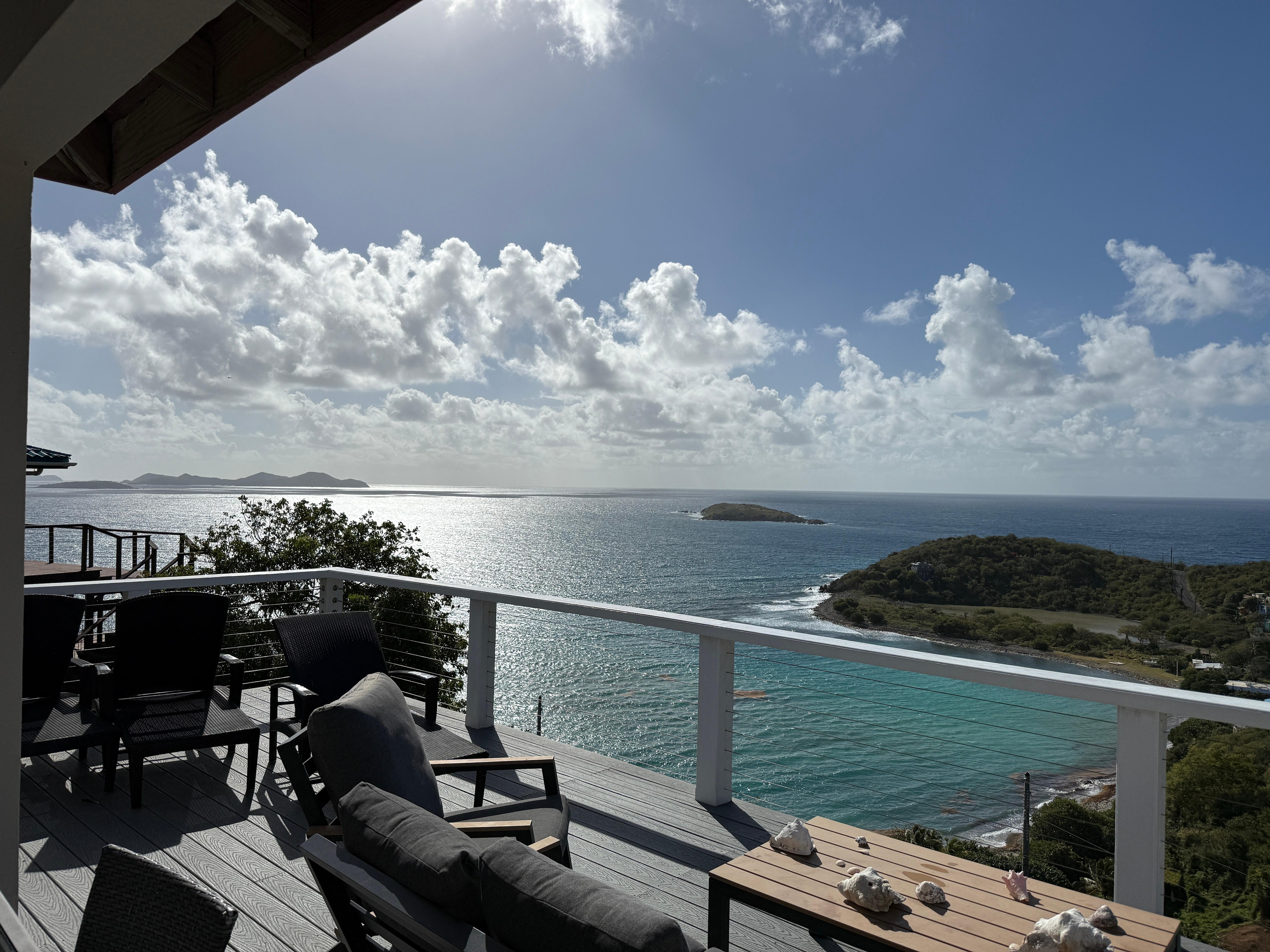 We got really lucky in choosing this place to stay for our relaxing getaway to St. John. Indoors, the bedrooms were very comfy with bathrooms attached to each bedroom. The common area was very spacious, with an enormous couch and large dining room table for games or a puzzle. Outdoors, the deck was our favorite place to unwind after a busy day exploring the island. Just a glorious view! This place feels secluded, yet you are just 10 minutes from Coral Bay, which has a grocery mart and a couple restaurants. When there was a power outage on the island for a few hours, Dwight was extremely helpful with getting the generator up and running. Thankfully, we needed the generator for only an hour or so. He’s a great guy if you meet him! We will definitely be back!