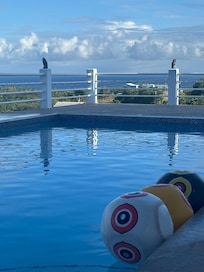 The pool is one of the largest residential pools on the island and perfect for cooling off after the beach. Views of the big island and epansive skies for stargazing.... all on our 2-acre property. Situated on the north shore we enjoy great breezes too.