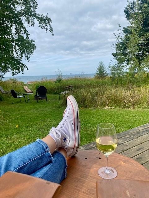 Looking for a Quaint, Quiet Getaway for two? The âStugaâis an authentic log cabin nestled on the South shore of Lake Superior - 3 miles west from the quaint town of Port Wing, Wisconsin. The Spectacular Views and beach access are unique to the area. The cabin is conveniently located as the halfway point between Superior,Wi. and Bayfield, Wi. The Stuga /Cottage is decorated in Swedish decor with appreciation for the simple but basic needs for a comfortable stay. The sleeping loft with loft stairway steps provides you with a comfortable queen bed and awesome water views.(Be sure to use handrails and keep your backside towards the lake when going up and down). The cabin is heated by a beautiful gas stove fireplace, along with an electric wall heater as needed.A flat screen TV with Dish is provided along with great WiFi access. You have access to a private fire pit with fire wood provided . The beautiful log swing (shared by both cabins)is a perfect place to enjoy the amazing sunsets and nature. You have your own private viewing bench. The beach access is âstepsâ located by the other cabinsâ viewing bench(to your left). You have a Webber grill available for your use.There is an information basket filled with brochures & suggestions for local attractions to see & do in the adjoining towns and area. Besides the Great Lake, there are numerous Waterfalls, hiking trails, & rivers for kayaking, fishing etc..