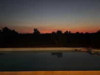 EXTĂRIEUR - Menant du salon (Ă travers de doubles portes vitrĂ©es) est la piscine de 12m avec une eau cristalline. Des chaises longues, des chaises et des tables sont disponibles sur la terrasse carrelĂ©e. L'endroit idĂ©al pour passer la journĂ©e dans le contexte de l'oliveraie, ou s'asseoir et se dĂ©tendre le soir aprĂšs une journĂ©e Ă la plage ou une journĂ©e Ă explorer la rĂ©gion.