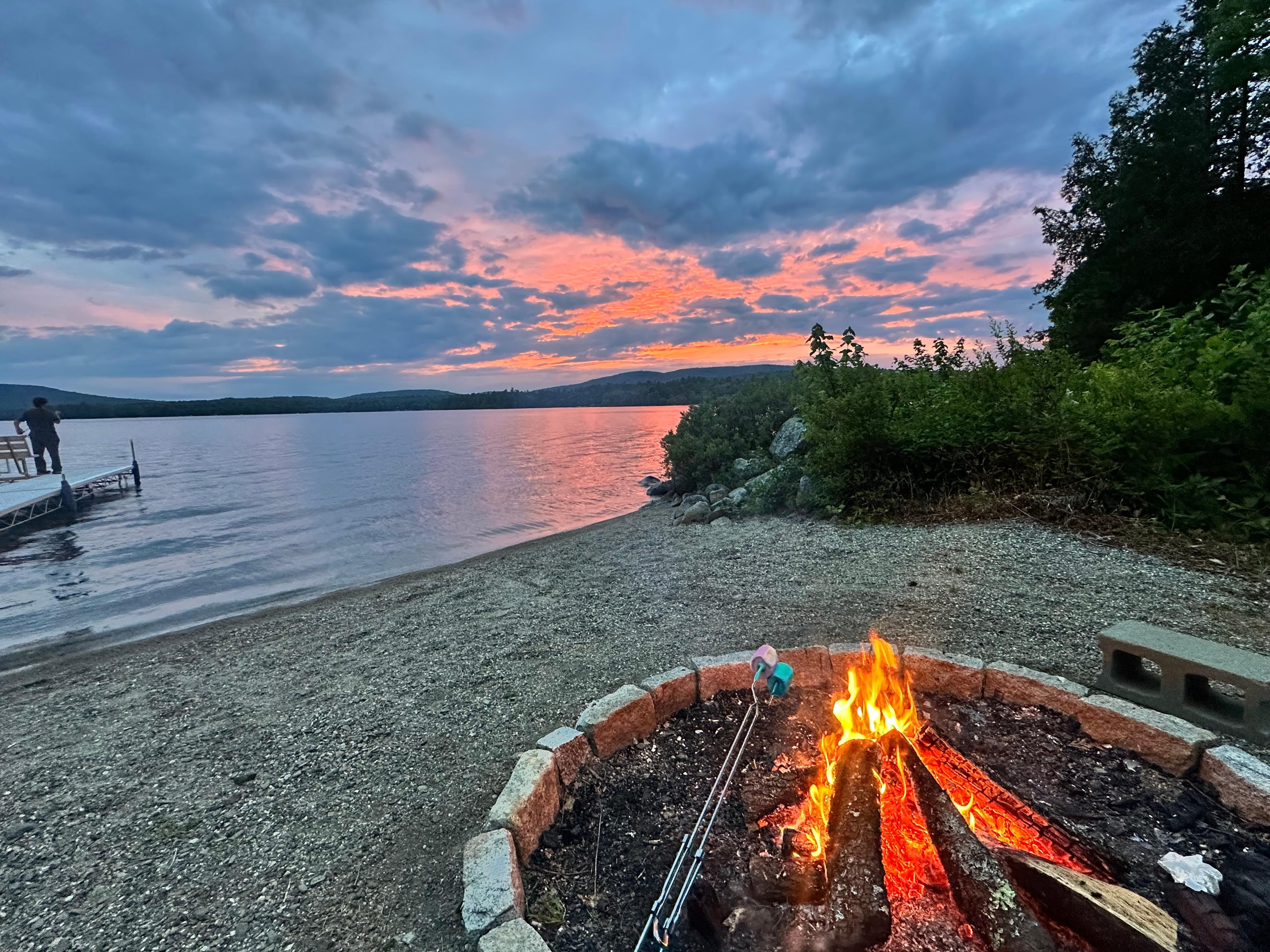 Kamp Tahoe is a log cabin located on one of the most desirable pristine glacier lakes in Maine. Use this camp as a home base for exploring all of Downeast Maine. Magnificent sunsets while sitting around our firepit on our gorgeous beach and 50 foot dock for swimming and boating. Seadoo and boat rentals nearby or bring your own which is subject to state of Maine regulations. Make arrangements now. Share a aluminum canoe, 14' boat, and 3 kayaks. Kitchen is fully equiped with silverware, pots and pans, dishes, glasses, cups etc. Utilities are all inclusive in our price. There is a grill, corn hole and basketball game in the garage. Combo washer and dryer in garage laundry room with a vanity and toilet. Beach is excellent for young children to walk out no drop off. There is also a screened in porch. Another camp available behind this one which is called Stairway to Heaven-Loft if you want to bring another family. Look up this listing if you are interested. Bring your boat or rent one at Downeast Marine in Sullivan Maine. This beachfront and on site amenities are shared by both units.