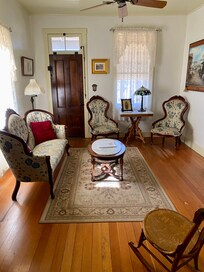 There are 3 houses total on the property that is included for your nightly rate of your stay. The Fremont house is the largest and has two bedrooms, two bathrooms and full kitchen. It also has a full size pull out couch. This house can sleep 6. The Carriage house is a one bedroom studio with a bathroom and partial kitchen. This house can sleep 2. The Wyatt Earp house is a one bedroom house with one bathroom. It has a partial kitchen and can sleep 2.