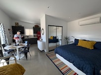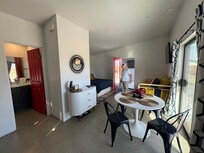 Your Joshua Tree adventure begins at this quaint studio. With 1 queen bed and 2 twin beds, this peaceful retreat is perfect for guests seeking a relaxing getaway. Midnight Sunrise is a tiny home located minutes from downtown Joshua Tree. Situated on a private half acre lot, you can view the Mojave mountains, watch breathtaking sunsets and enjoy the sparkling night skies. During the day it's a short drive into Joshua Tree National Park as well as minutes away from boutique and vintage store shopping and incredible dining options! Come relax, escape and enjoy! Dogs are welcome to enjoy our space and will be charged 100$ per stay.