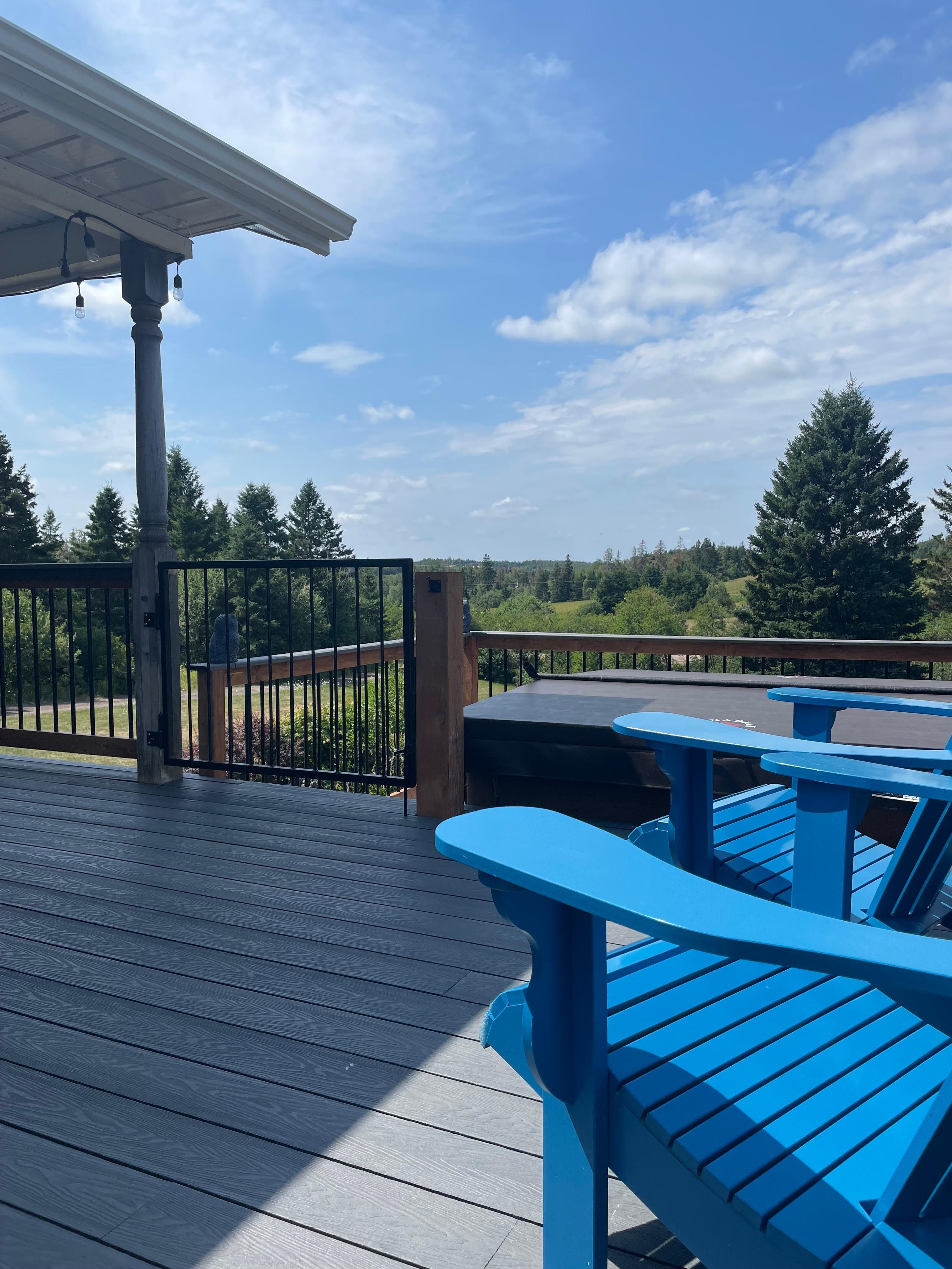 Sur la grande terrasse partiellement couverte, profitez d'un barbecue au propane, de nombreux siĂšges de terrasse et d'un bain Ă remous relaxant tout en admirant les magnifiques couchers de soleil.
