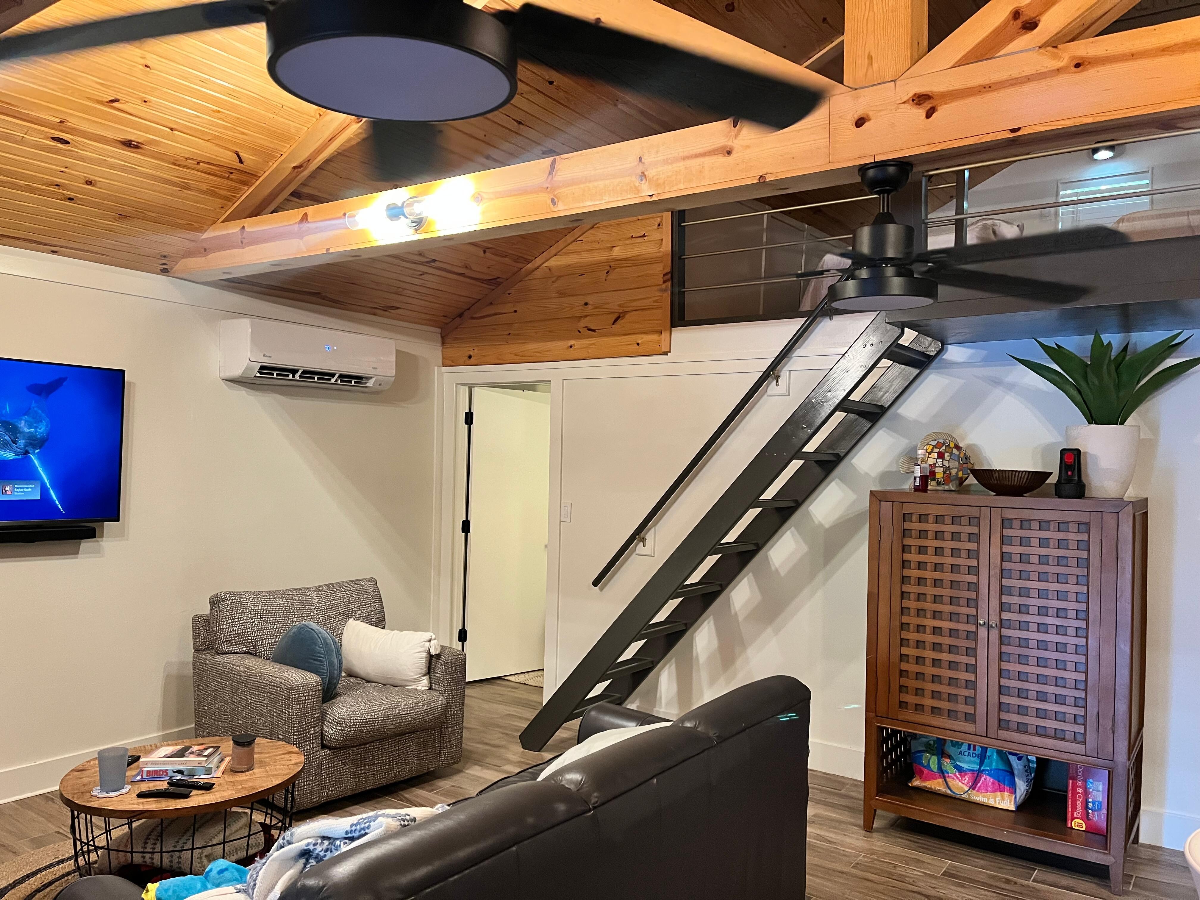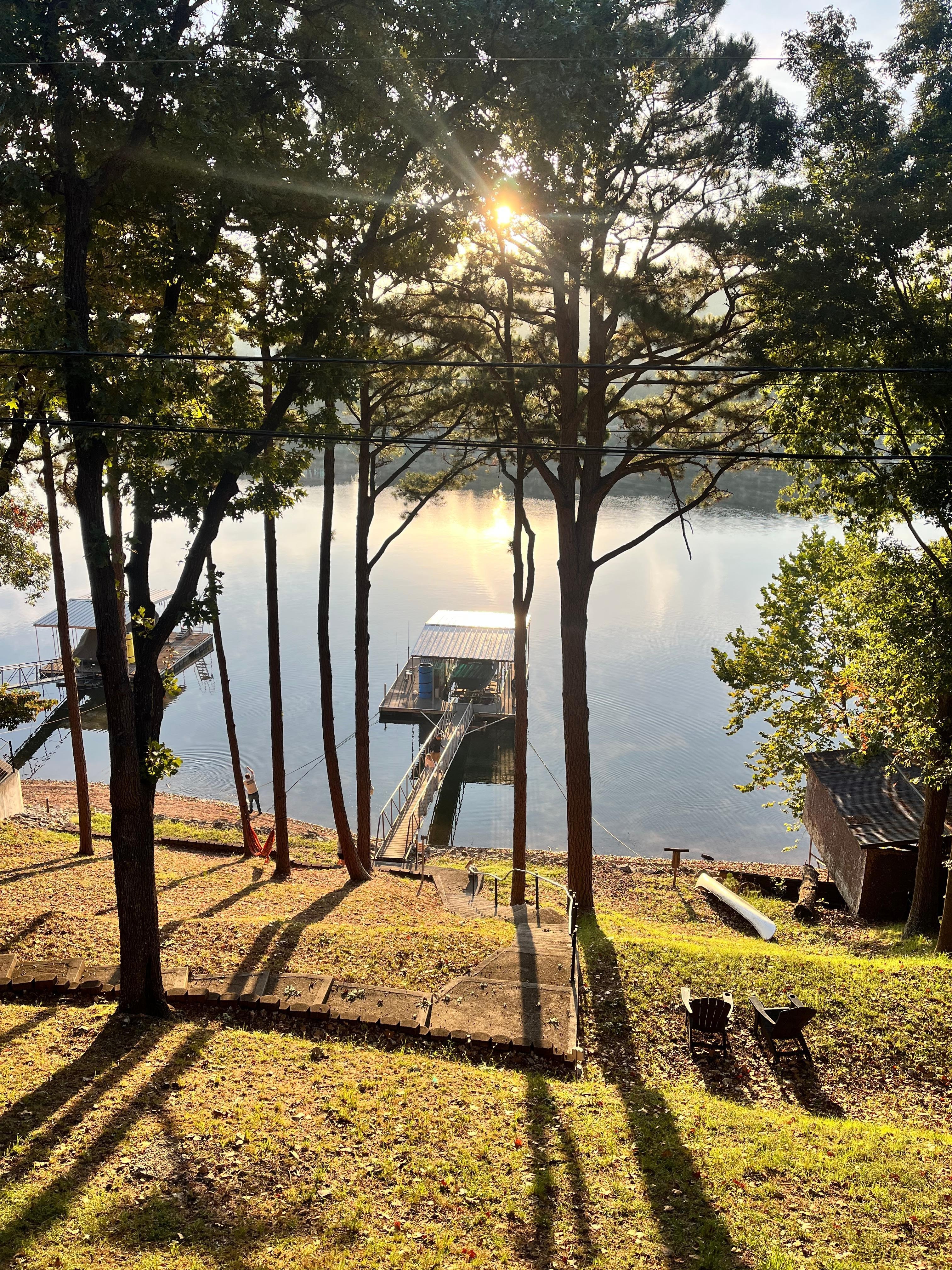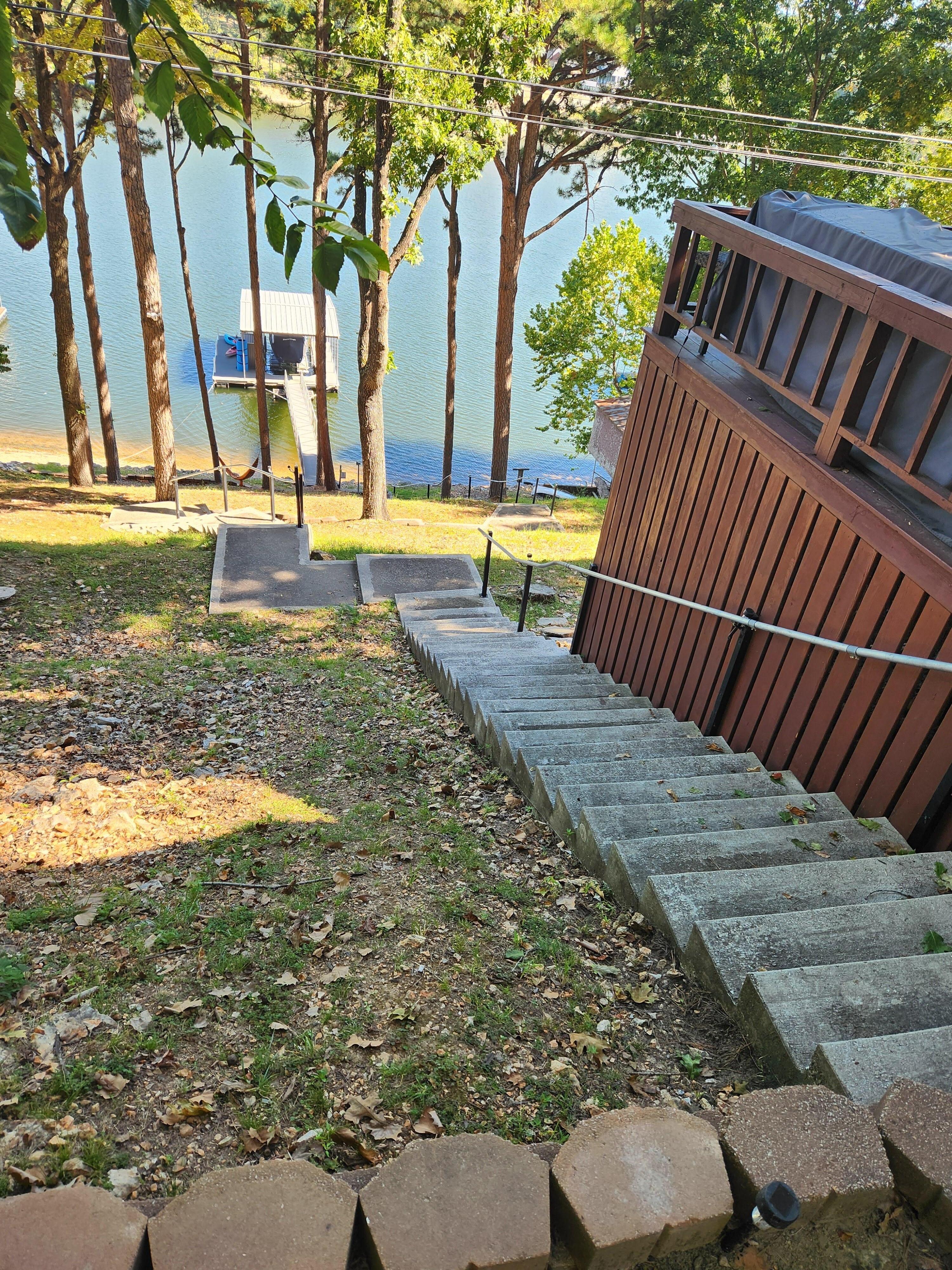 Discover the beauty of Grand Lake from this 2-bedroom + loft lakefront home nestled in a soothing and tranquil setting, this peaceful retreat offers a truly rejuvenating escape for guests. The bedrooms feature 2 queen beds, ensuring a comfortable night's sleep. The bathroom is well-appointed with a shower and a hair dryer. In addition, there are 3 additional spaces, including a living room with 1 full pull-out couch, 1 queen murphy bed in the air conditioned / heated sunroom overlooking a beautiful lake view, and 2 twin beds in the loft overlooking the living area and kitchen. All mattresses and pillows are new and we provide fresh linens to keep our guests comfortable and rested. This lakefront property is in coveted Woodard Hollow Cove providing deep water and in a no wake zone. This is the perfect setting for swim and play from its private dock while safe from speeding boats. A 15 ft Lily Pad is available for water leisure as well as 4 kayaks for paddling around the cove. An In-counter ice machine is perfect for filling up your cooler and provides 50 lbs of ice per day. After a long day on the lake, enjoy grilling on the Oklahoma Joe's grill overlooking the water. It has propane and charcoal grilling as well as smoking capabilities. There is also a Blackstone griddle with air fryer available as well. We have an outdoor shuffle board table to entertain while grilling or to just hang out and enjoy the view. The large outdoor table is available for dining on the deck or gather inside for dinner and games at our 8 person table with lake views. You can enjoy watching TV with the family on the Amazon Fire TV anytime during your stay. Our fiber internet provides the best internet for streaming or working remote ( even on the dock ). It's a short 4 minute boat ride to Shangri-La Resort offering 4 restaurants, golf, pickle ball, marina, and more. Launch your boat at nearby boat ramp only 7 minutes away. Come experience your best lake life at our exciting yet peaceful home we call âWoodard Hollow Hideaway.â
