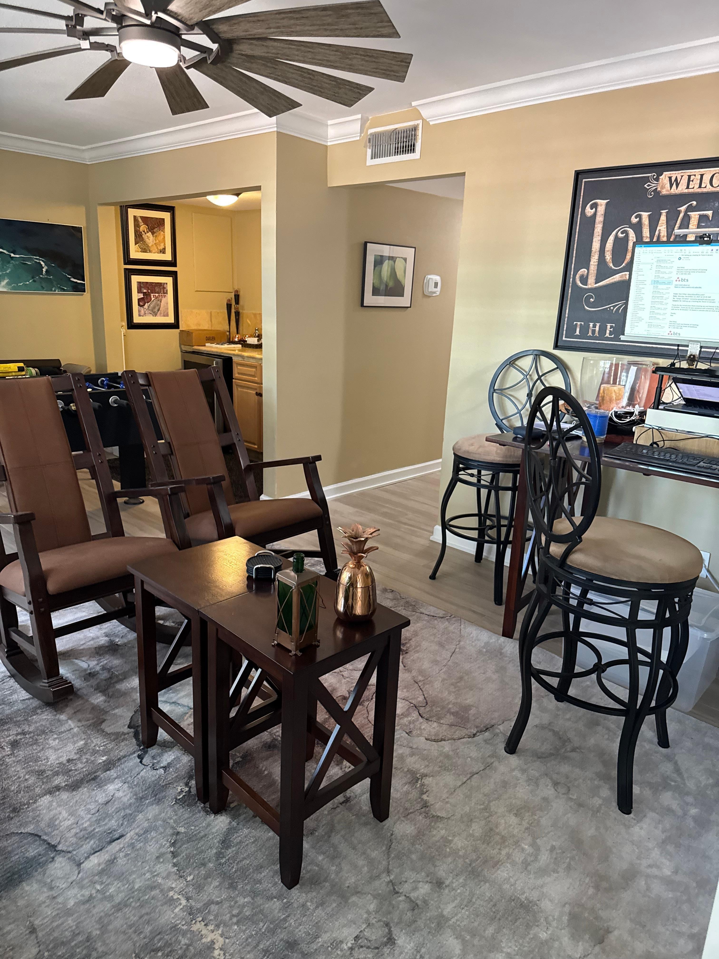 The Perfect Getaway is a 28 NIGHT MINIMUM RENTAL and our family's home for part of the year. All modern furniture including all beds and mattresses. With 4 bedrooms and 2 full bathrooms (2 bedrooms / 1 bathroom on each floor), each room is decorated with vibrant colors, tasteful decorations and all of the amenities that you will need for an awesome stay! Both den and living rooms have 55" TV's and all bedrooms with 35" - 40" TV's. WIFI and cable is included. We provide all sheets, blankets and pillows which are cleaned and disinfected for each stay. We also provide Keurig and drip coffee makers, towels for bathing and beach, soaps including shampoo, conditioner and body gel along with starter packs for all paper supplies. Fully stocked kitchen with stainless steel appliances, spice rack and all cooking utensils for inside and barbecuing outside. Even dog treats and dog toys will be provided for your furry creatures!