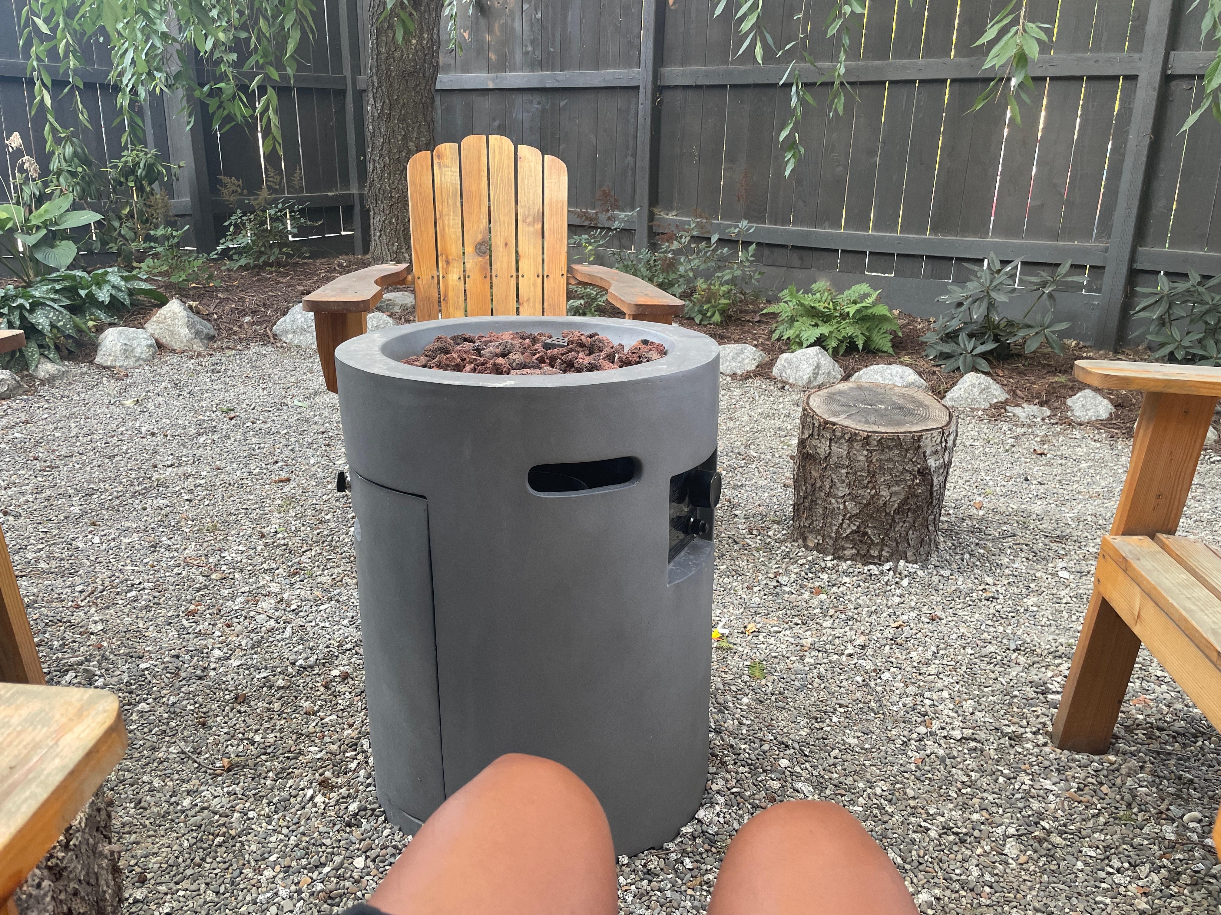 - Private backyard sanctuary with 7âft fencing, mature trees, fire pit, and outdoor dining