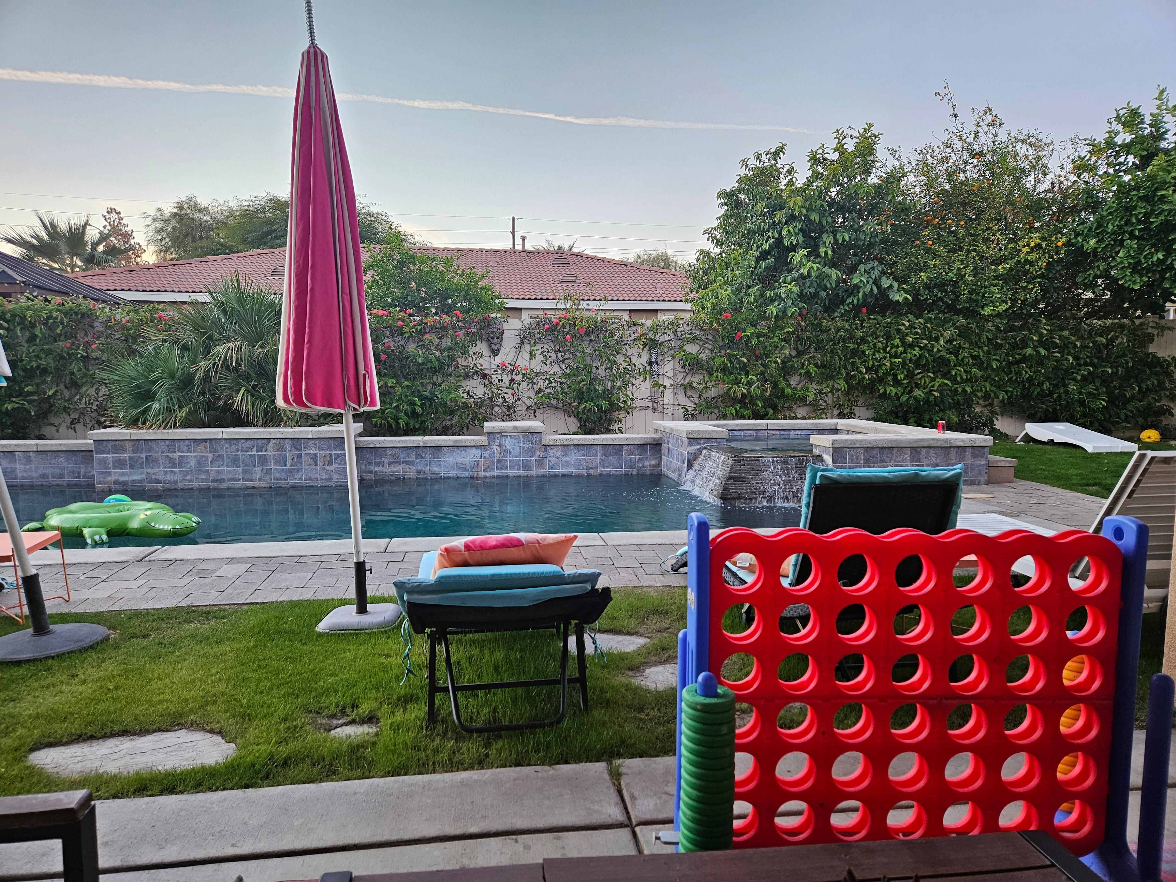 This is a new listing, we have nearly 5000 reviews & over 100 listings, please check them out by clicking on my photo & be assured you are in good hands. Property have been improved with some of the new furnishings, lots games outdoor and indoor, some decor + outdoor furniture. Great location close to all amenities in La Quinta & Indio. Good neighborhood. Lots of room & fun for everyone. Layout is 3 king beds, 2 twin and 2 queens and one full rollaway.