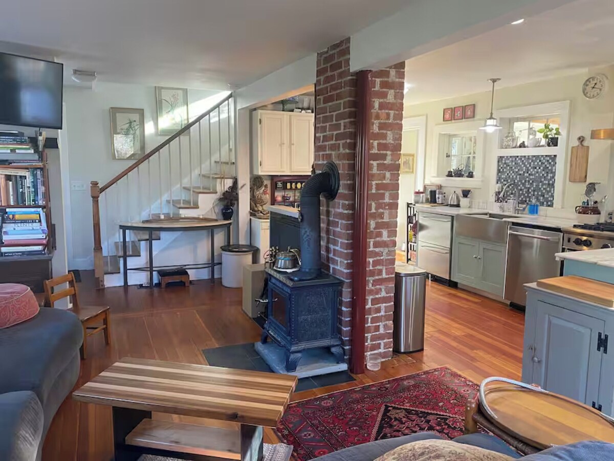 THE SPACE: Cozy and quaint 2 bedroom home, perfect for a New England winter. Sip coffee in the sunny dining nook. Large deck on back of house, small patio in the front. Main area has open floor plan. Two bedrooms are located upstairs with bathroom. Basement area with additional refrigerator. Washer and dryer on main floor. This is a private home, fully furnished and equipped - 960 SQ FT total.