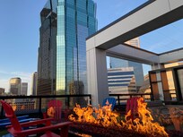 Our spacious two-bedroom apartments can accommodate up to six guests with a king and a queen bed and a pull-out sofa that sleeps two. There is a modern bathroom, with a rain shower head. Youâll adore the breathtaking kitchen thatâs decked out with stainless steel appliances, granite countertops, a Keurig machine, and more! After a long day exploring the city, unwind in front of your flatscreen TV with Roku and unlimited wifi. Better yet, take in the sights of downtown on your own private balcony.