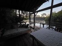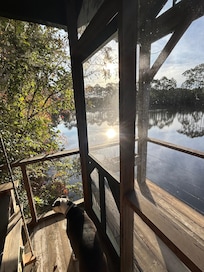 Unwind in Apalachicola at this cozy, waterfront, secluded cottage off of the beaten path. Turtle Pond House sits on a private 3 acre pond where you can catch your own dinner if youâd like! Fully equipped kitchen, queen bed, outdoor shower, heating/AC, WiFi and private laundry house, guests will find everything they need for a nice stay. Relax on the screened in porch on the swing bed, feed the turtles or explore the historical city just minutes away. Downtown Apalachicola has much to offer from shopping to great food to entertainment and day activities. The beautiful St. George Island beaches are only a 15 minute drive away. Pets welcome with approval.