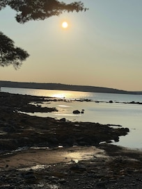 âą Prime Waterfront Location (with Sunset View): Nestled on the serene shores of Mill Cove, offering stunning views and easy water access. The house sits atop a grassy hill, with a stone and sand beach below. House faces west for gorgeous nightly sunsets.