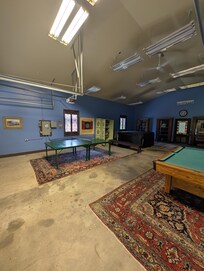 The expansive property, affectionately known as "Danimaland," spans several hundred acres and features miles of hiking and biking trails suitable for both casual explorers and adventure enthusiasts. Additionally, guests can enjoy a 1,000-gallon wood-heated hot tub, a shared "rumpus room" with a pool table, Ping-Pong, darts, and a Karaoke machine, as well as a hot tub.