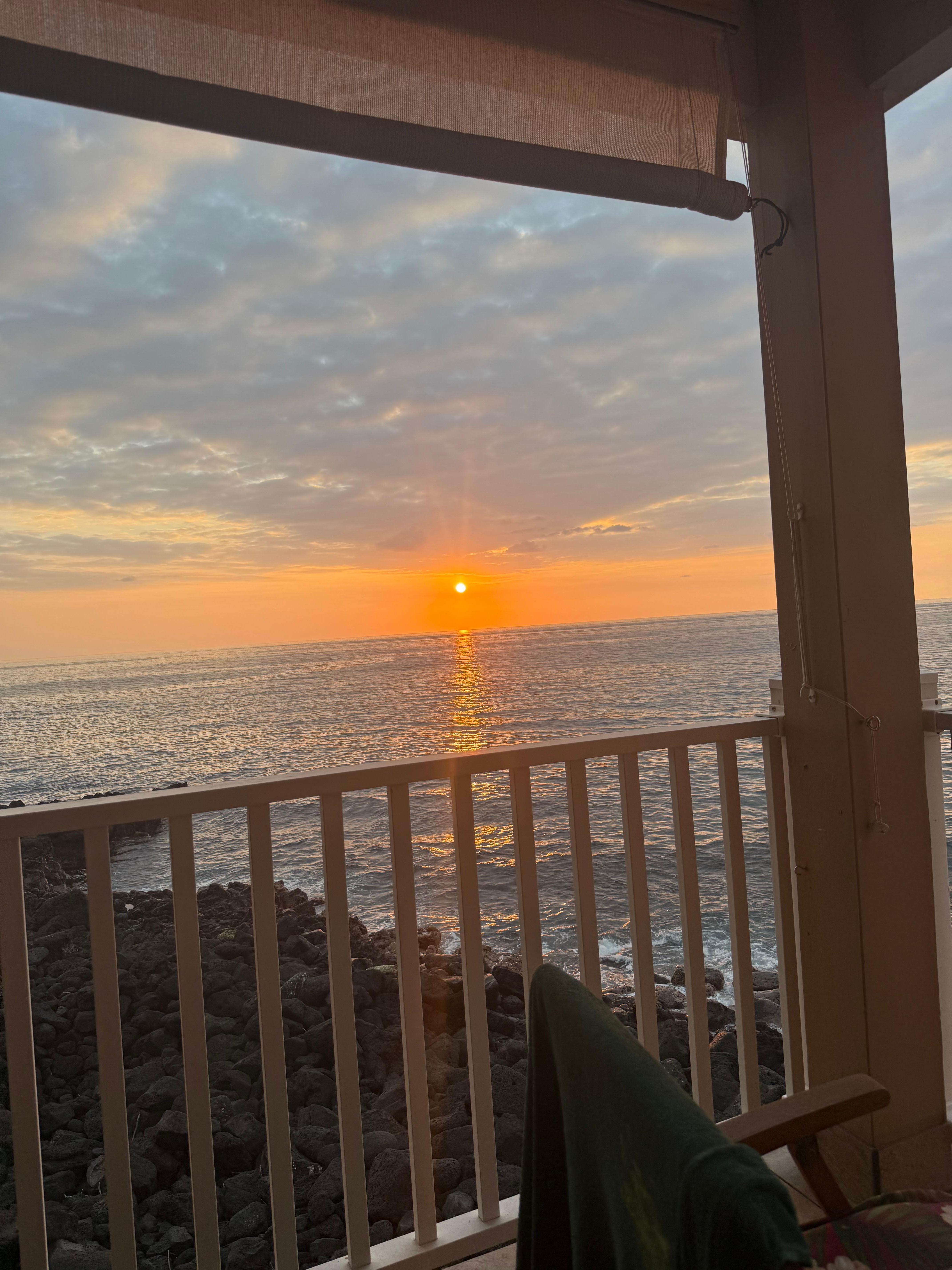 Unité de bord de mer fantastique. Profitez de l'observation des dauphins, des baleines et du magnifique coucher de soleil sur une véranda trÚs privée ou du son apaisant des vagues tout en sirotant une tasse de café Kona au petit-déjeuner. Sentez la douce brise de l'océan. La chambre principale dispose d'air conditionné pour un confort supplémentaire et un lit de taille confortable. La deuxiÚme chambre a également la climatisation et 2 lits jumeaux. à compter du 1er juin 2019, nous avons également ajouté une unité de climatisation dans le salon.