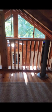 This cozy cabin door's open into the living room area with a fireplace, comfy couch, and tv. To the right is the door to the deck and brand new hot tub with a table to eat at outside. From the living room, you will walk through the kitchen to the stairs to the loft. The loft has a king sized bed and tv. Downstairs, the kitchen is stocked with everything you'll need for a short term stay. Outside provides seating around your personal fire pit and a gas grill.