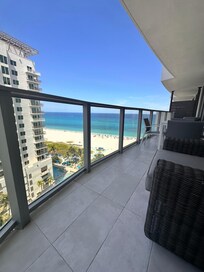 The balcony connects to both the living room and primary bedroom, making it easy to step outside and soak in the sea breeze anytime. Whether you`re working on your tan, reading a book, or just watching the waves roll in, this is your front-row seat to paradise.