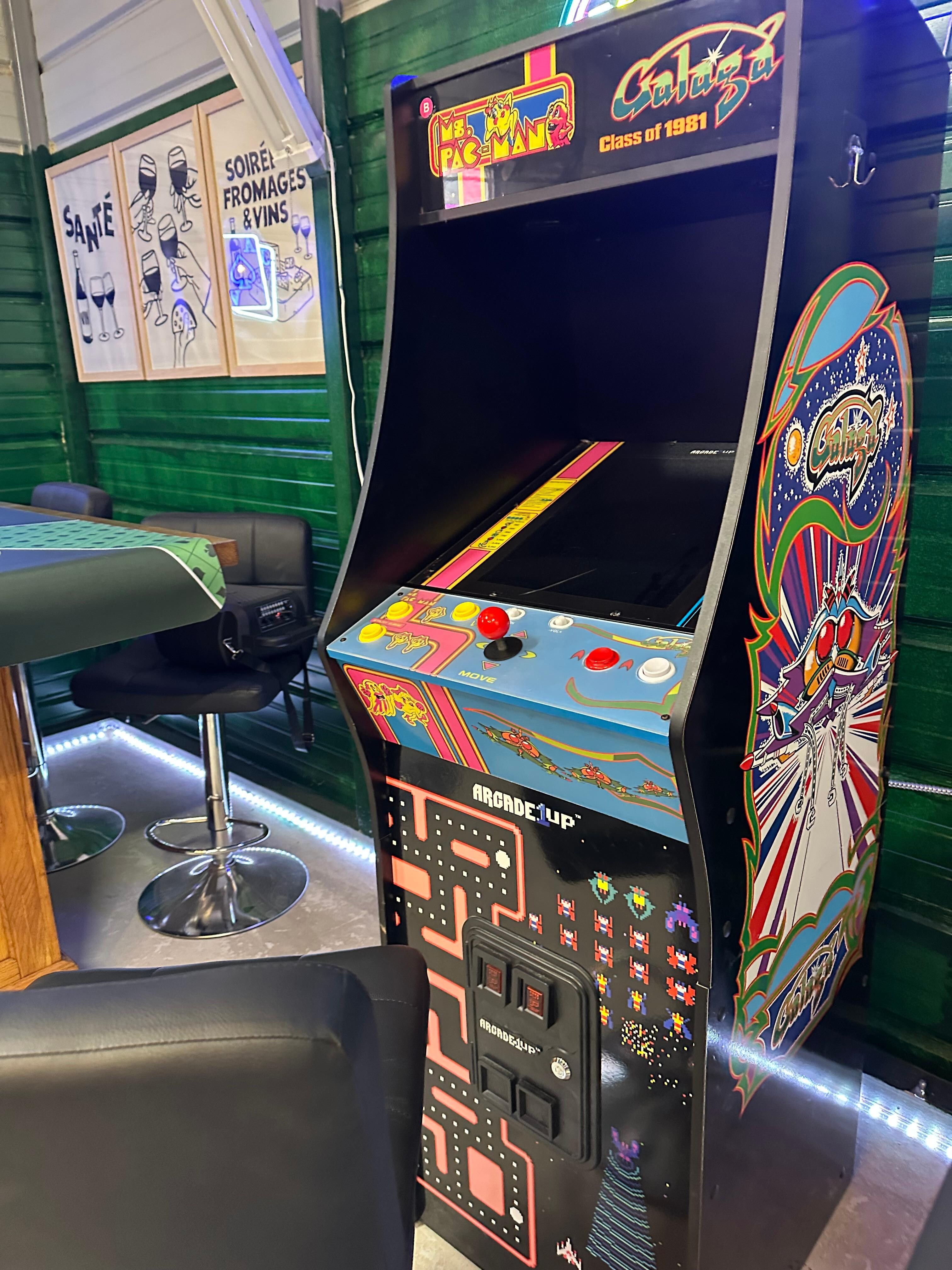 * Arcade Deluxe Machine with 12 Namco games including Ms. Pac-Man, Galaga, Galaxian, Rally-X, Galaga '88 and more