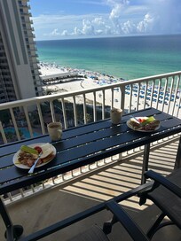This balcony is ideal for sitting outside with a cup of coffee in the morning and gazing out at the surrounding city and bright blue ocean waters. We love this private deck for those who want to have some peacefulness and incredible views of Panama City Beach.