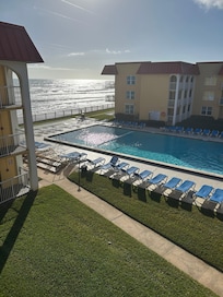 We are family friendly and have furnished our condo with all the comforts of home. It is light and airy and very welcoming. It is quite open and has great views of both the ocean and the pool.