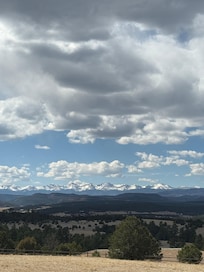 A view of the surrounding areas and San Juan Mountains and Spanish Peaks (looking West) from the lower deck