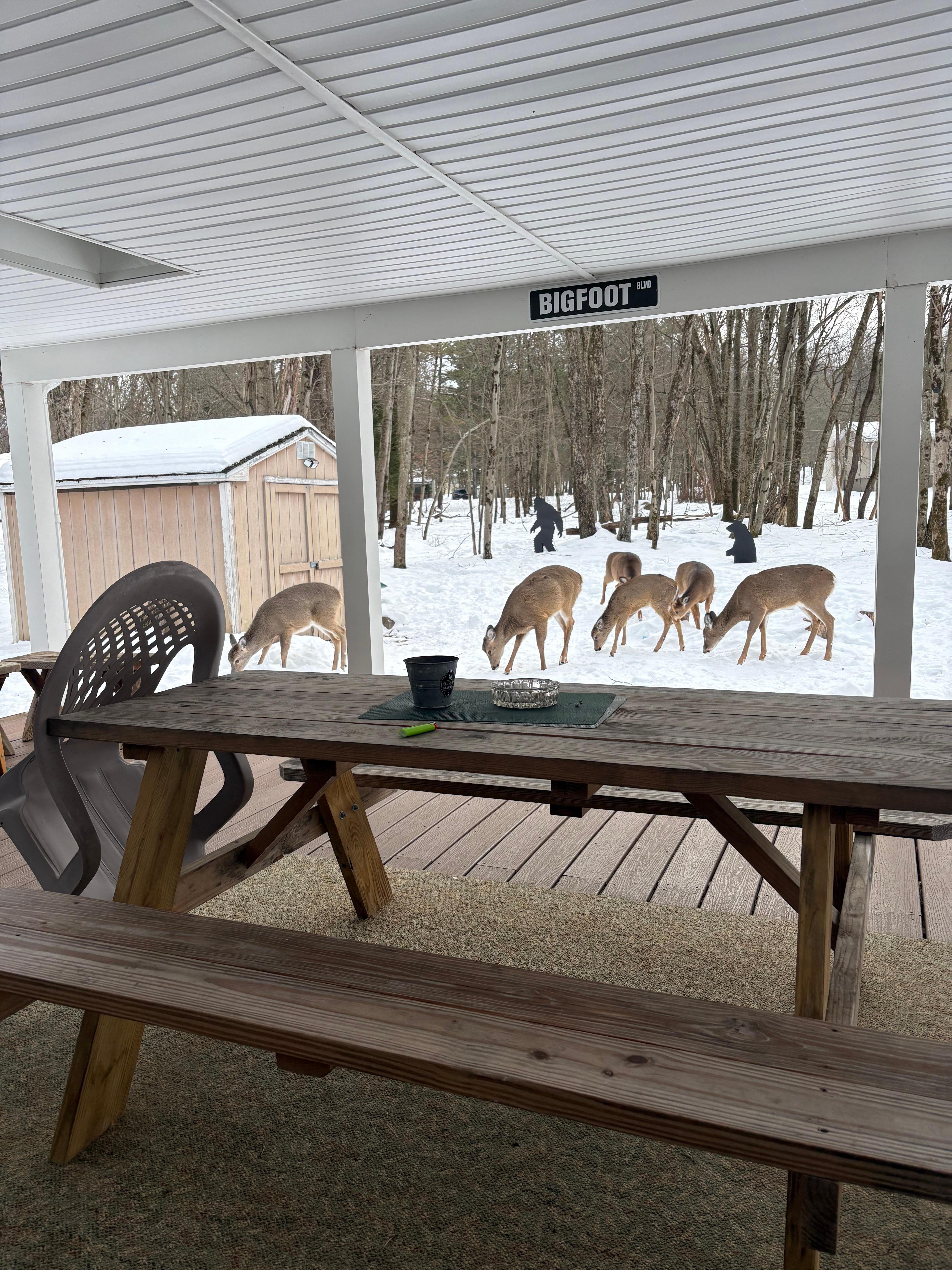 The start of our Annual Getaway was miserable due to icy weather and we thought we were lost because there is no mention of the house being located in Indian Lake community. There was a long line to get in because something was going on with the gates. We were very happy once we were able to get to the house and get out of the car! The house was just what we were looking for - comfortable, cozy and clean. There were a bunch of beautiful deer in the back yard most of the weekend that kept us entertained and busy feeding them. There was several times where we had 14 deer, 1 turkey, squirrels and 2 cats lol. Like I said, the weather was frigid and we are a little older so we spent most of the time in the house enjoying the wood stove and lots of laughs. We would book here again! Thank you
