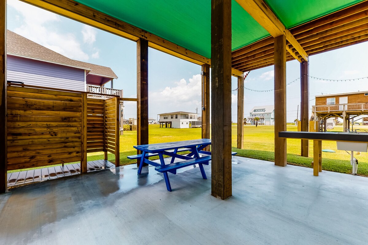 Welcome to A Wave from It All by Casago Bolivar Vacations. This brand-new, 3-bedroom, 2-bathroom home offers stunning ocean and bay views from its spacious decks. Located in the peaceful San Luis subdivision, you'll have access to a neighborhood boat ramp, dock, and a free beach access road just across the highway. With upscale furnishings and thoughtful coastal decor, this home is the perfect spot for a truly relaxing getaway.
