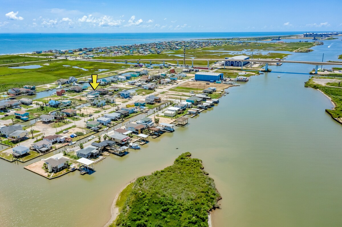 Welcome to The Quirky Whale by Casago Bolivar Vacations, a unique and fun-filled waterfront home! This dog-friendly retreat is perfect for those who love the water, featuring a boat dock, provided kayaks, and an expansive deck for enjoying the serene canal setting.