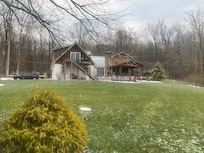 Faites comme chez vous .... La maison a une cuisine entiÚrement meublée, salle à manger avec table à manger avec six chaises plus un grand ßlot avec deux tabourets, salon, détendez-vous sur la causeuse inclinable ou le canapé devant la cheminée. Profitez du wi-fi dans toute la maison, mais il n'y a pas de télévision. Une salle de bain en bas avec douche et une petite chambre avec quatre lits superposés pour les enfants. Machine à laver et sÚche-linge. A l'étage, une chambre avec un lit queen et un lit simple. Salle de bain principale avec bain à remous, doubles portes roulantes ouvrant sur le salon avec cheminée et canapé, cela se connecte à la chambre principale qui a un lit queen. La chambre principale a une porte ouvrant sur un balcon donnant sur l'étang. Le canapé du salon s'ouvre sur un lit queen si nécessaire pour une chambre supplémentaire. Il y a aussi un grand patio en dalle à l'arriÚre avec un ensemble de patio et un gril à gaz qui est parfait pour s'asseoir et se détendre! Foyer dans le jardin, venez en profiter! Jeu de trou de maïs pour votre usage (stocké dans le garage). Cette propriété est conviviale et familiale avec une grande cour pour les enfants à jouer en plein air!