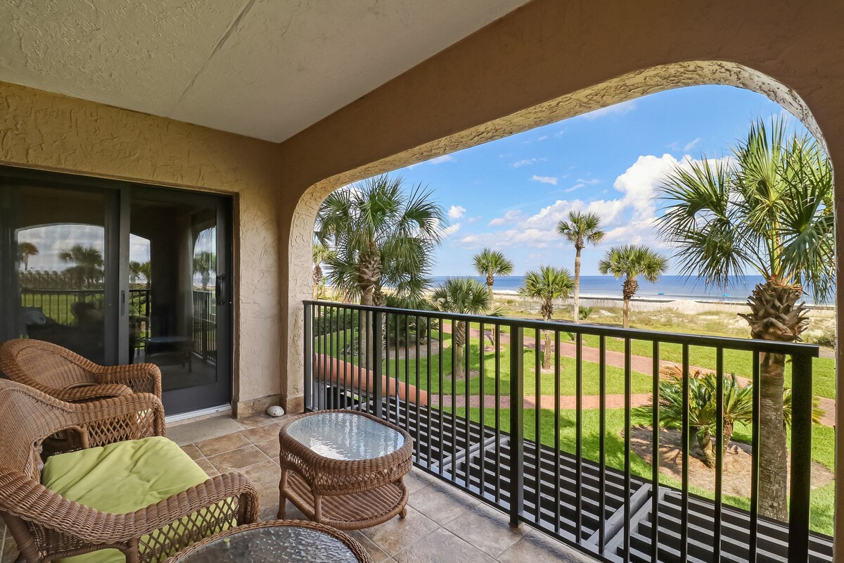 Beachfront condo with beach access, balcony, AC, pool & tennis