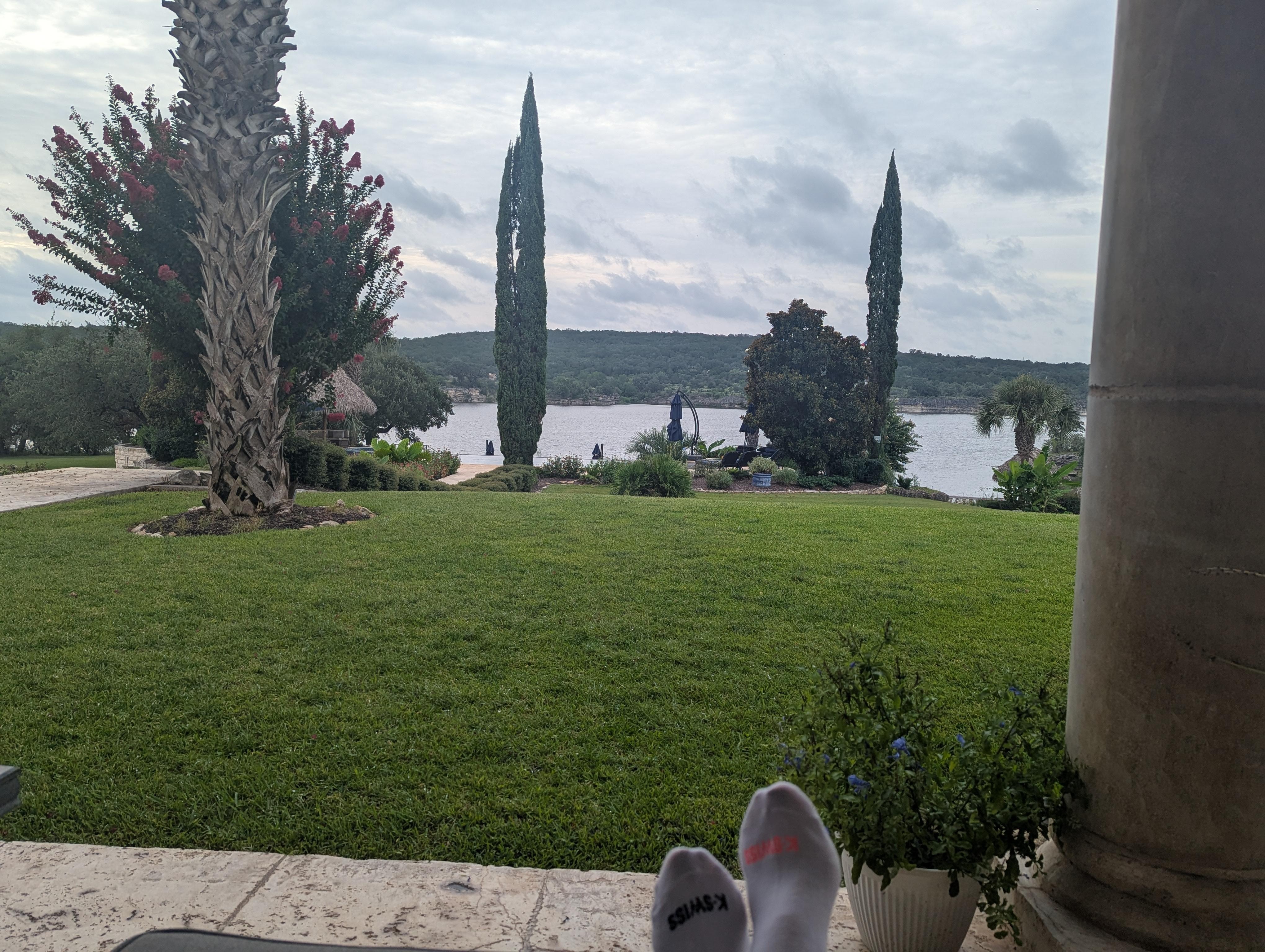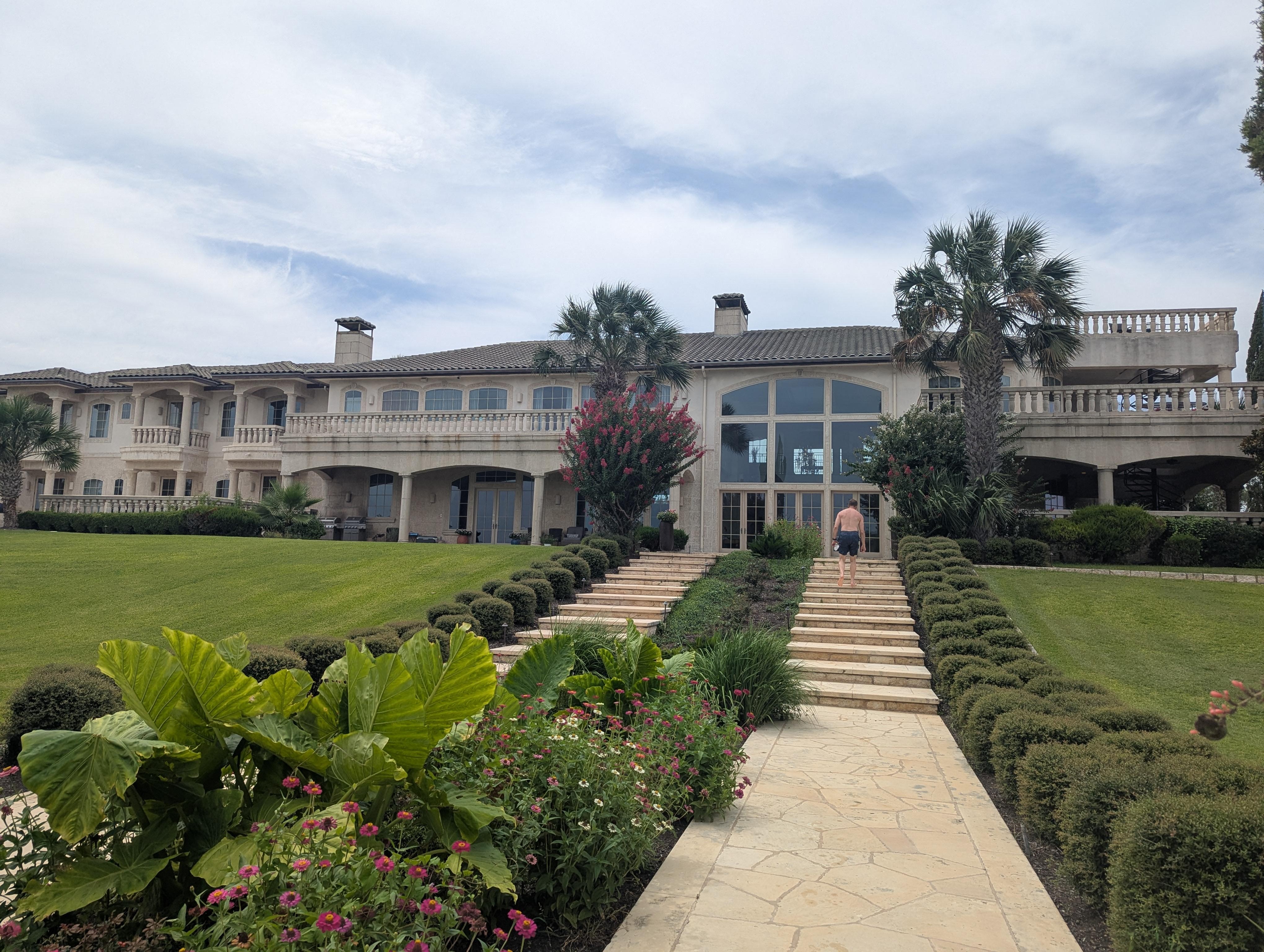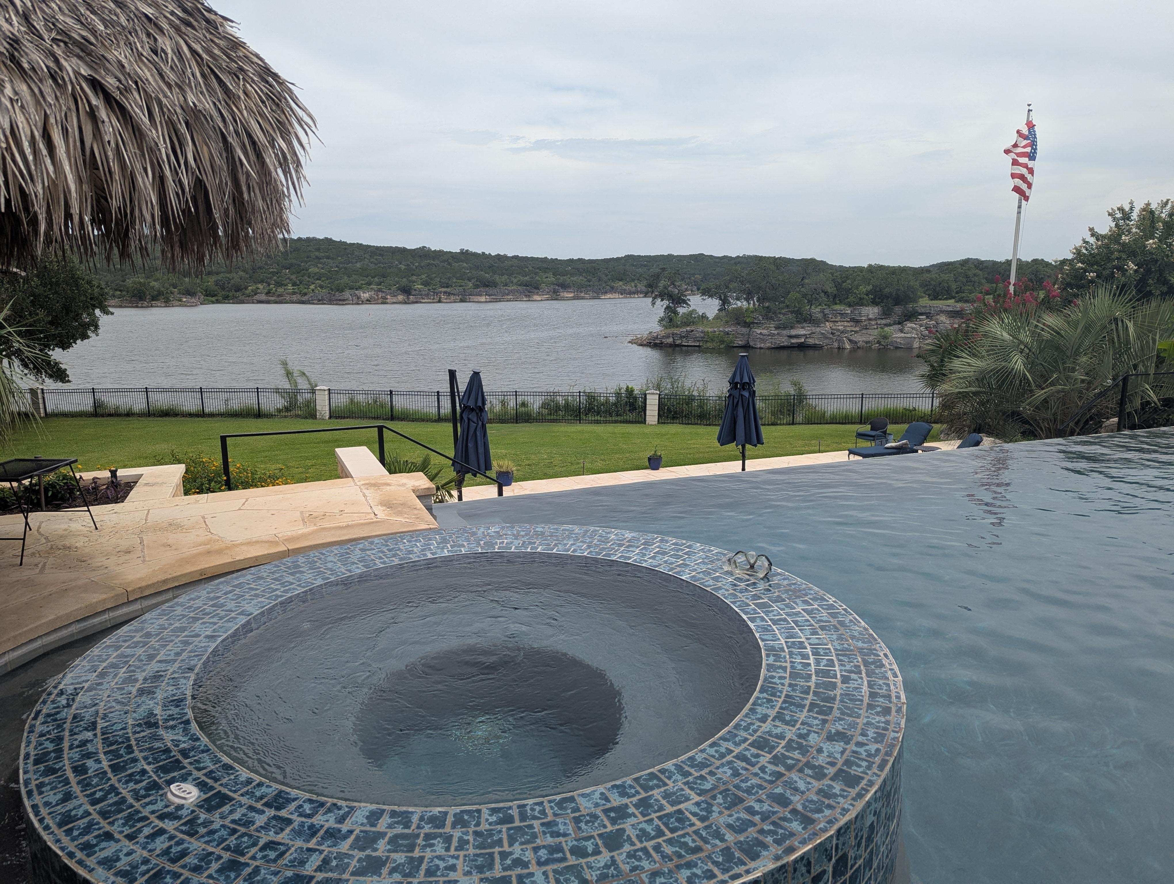 AmĂ©nagĂ©e avec un clin d'Ćil Ă une Ă©poque plus formelle, les pelouses lisses et soignĂ©es sont accentuĂ©es par des allĂ©es gracieuses, des cyprĂšs et un grand escalier en pierre menant Ă la piscine Ă bord nĂ©gatif. Avec l'apparence de se dĂ©verser dans le lac Travis, la piscine est une finale Ă couper le souffle sur le terrain.