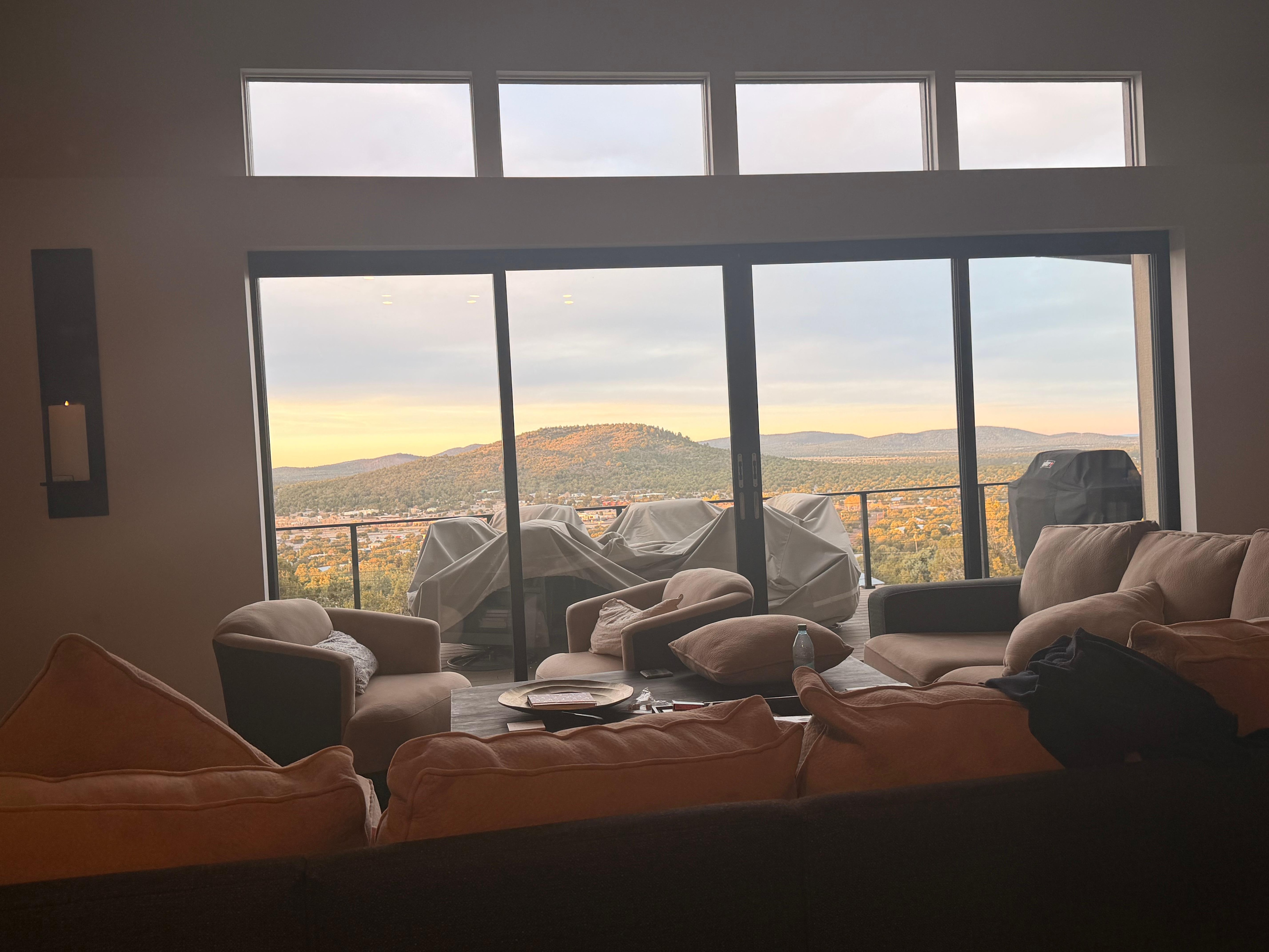 Designed for discerning adult travelers, this 4-bedroom king retreat near the Grand Canyon offers amazing views of Bill Williams Mountain from it's perch high on a hillside. The night sky from the balcony is stunning year-round. Picturesque sunsets enhance the natural beauty. With 4 king bedrooms and a welcoming great room, itâs perfect for friends or family gatherings. The linear fireplace provides warmth on chilly nights. This home is fully equipped for you to arrive and enjoy time together. This home has nothing to occupy small children.